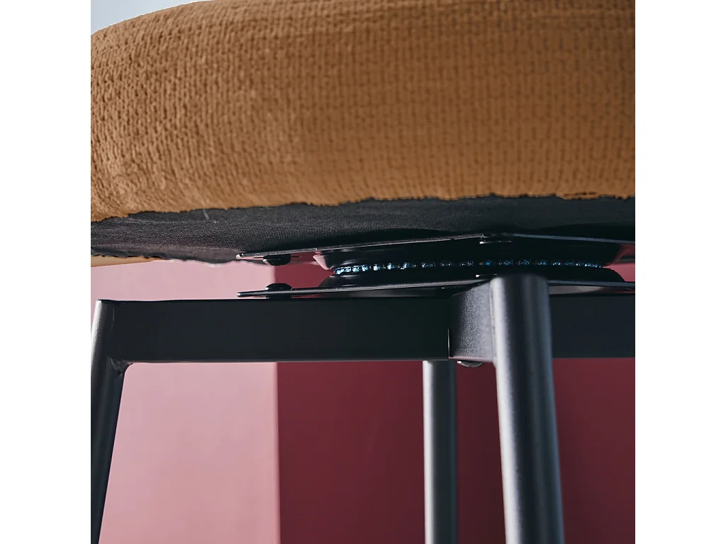 Lot de deux tabourets de bar assise rotative métal noir et tissu camel - L 50 x P 50 x H 92cm - Iris