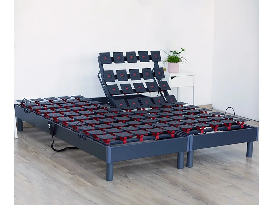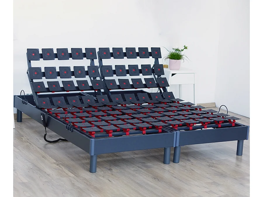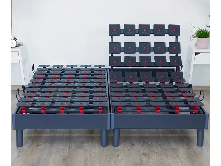 Lot de Sommiers tous plots reglables gris Dimensions - 2x90 x 200 cm
