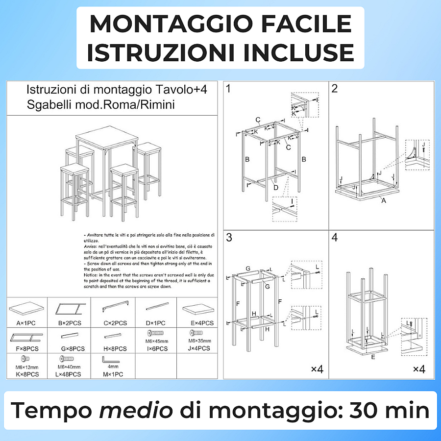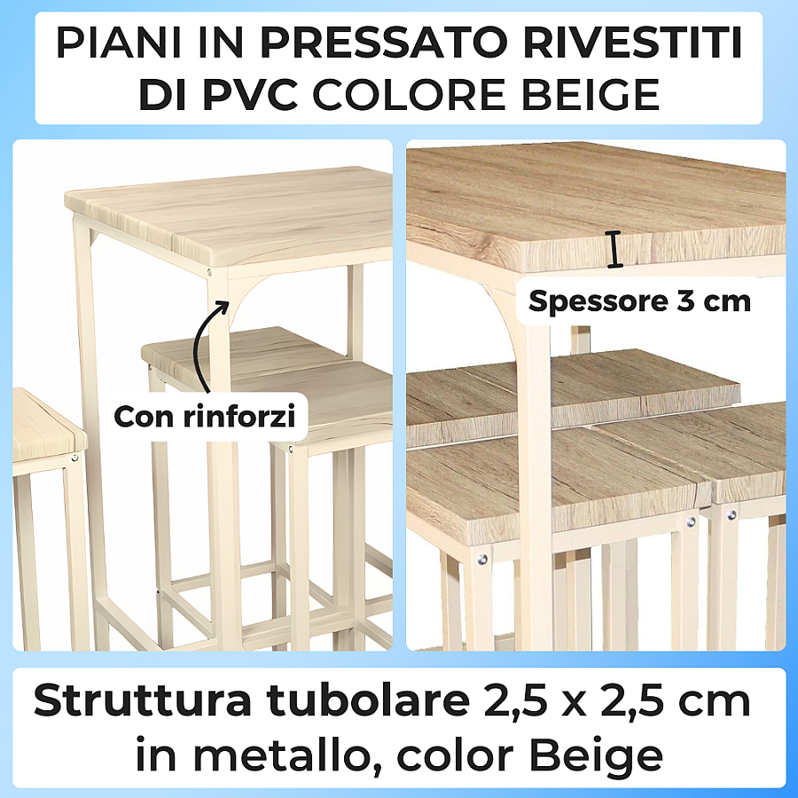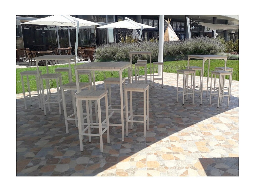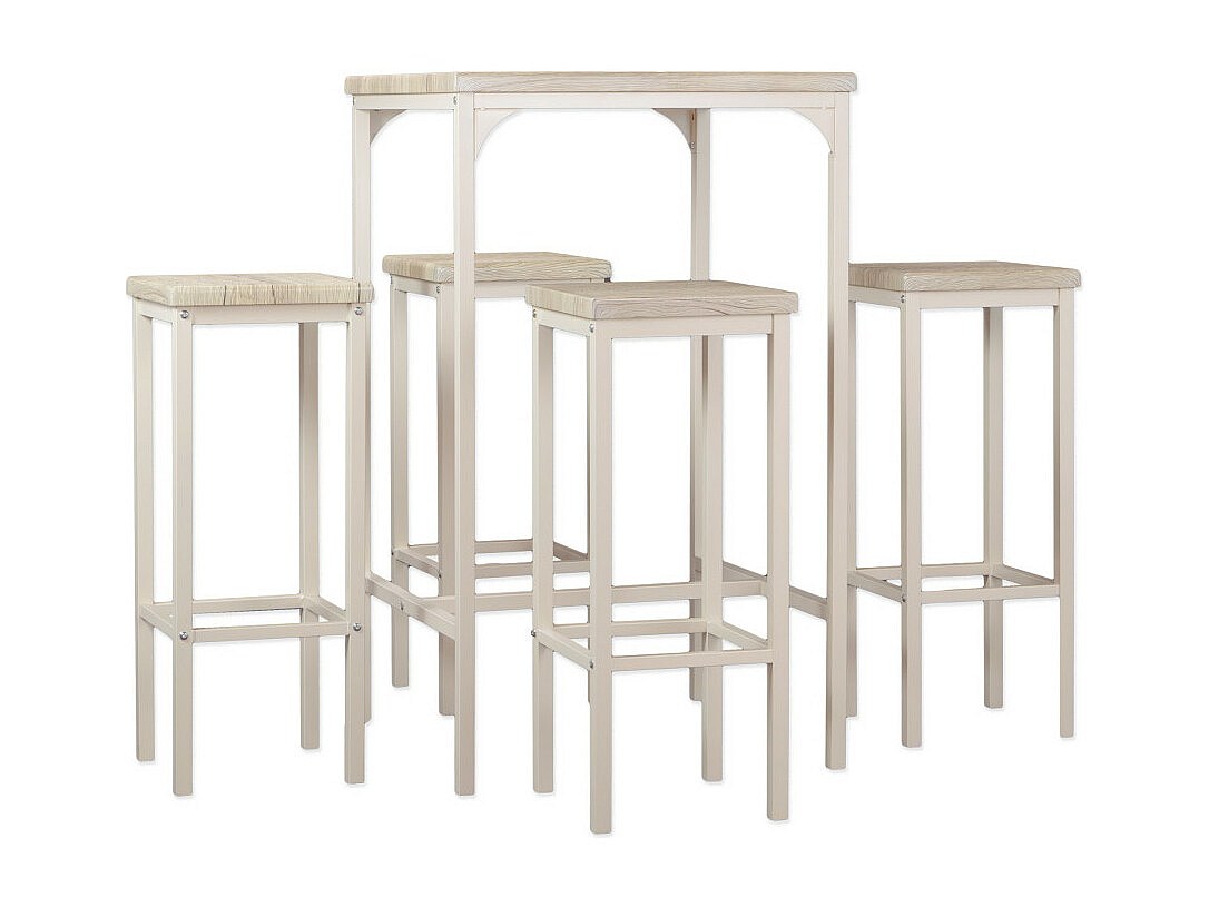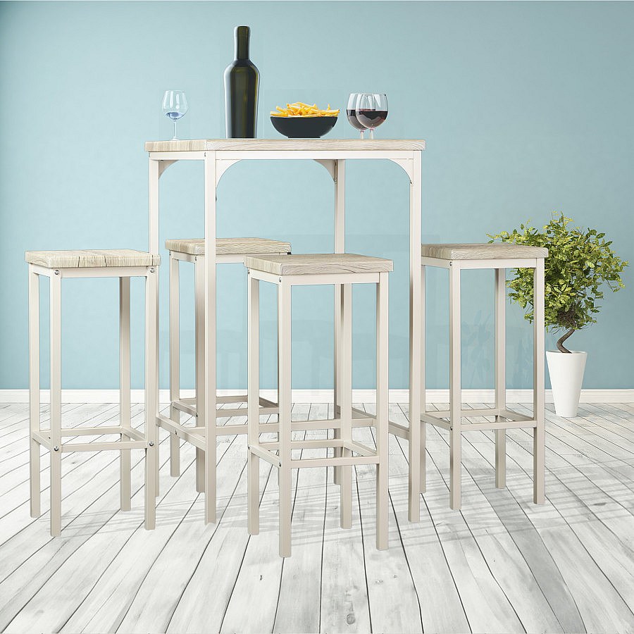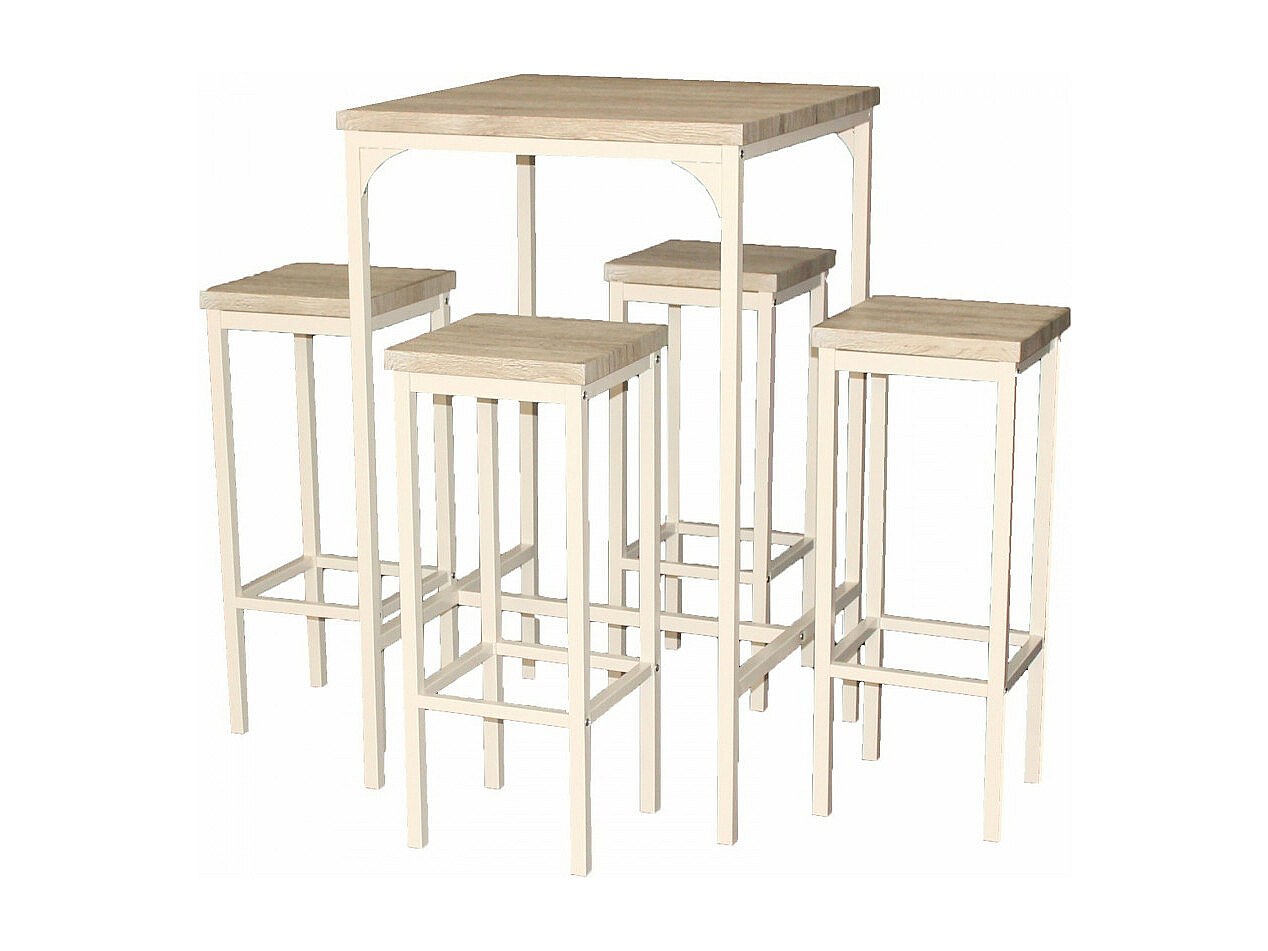 Lot de table de bar carrée de 110 cm de hauteur et 4 tabourets en chêne beige mod. RIMINI par Yelloo