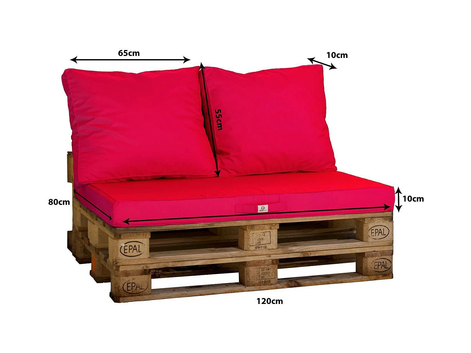 Lot coussins extérieur pour palette rouge piment 120x80 Imperméables Anti-UV DECOARTS