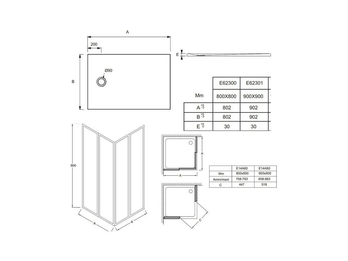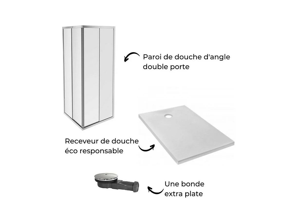 Lot receveur douche JACOB DELAFON Ipso 80x80 cm + paroi douche d'angle 190x80 cm Serenity