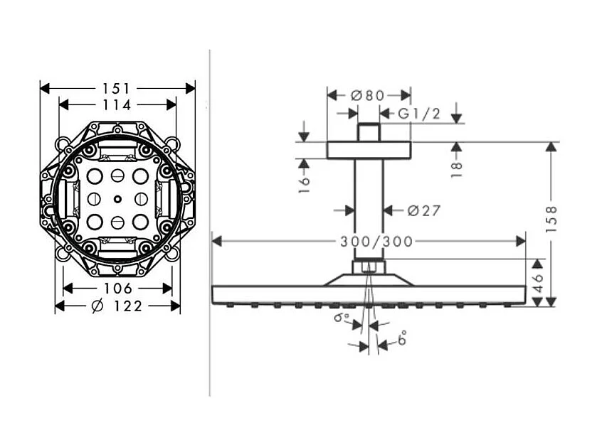 Lot robinet douche encastré thermostatique HANSGROHE Ecostat E + Douche de tête Raindance E 300 fixation plafond