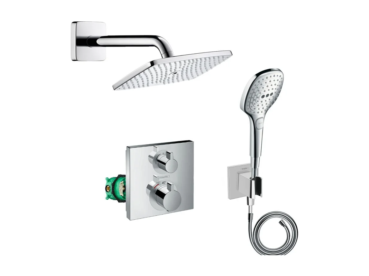 Lot robinet douche encastré thermostatique HANSGROHE Ecostat Square + Douche de tête Raindance E 240