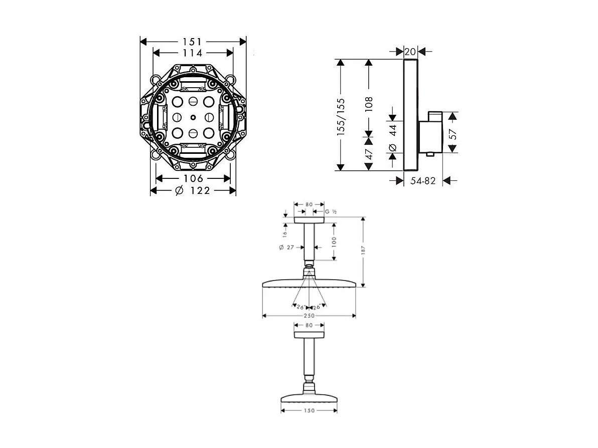 Lot robinet douche encastré thermostatique HANSGROHE Ecostat Square + Douche de tête Raindance E 240 fixation plafond
