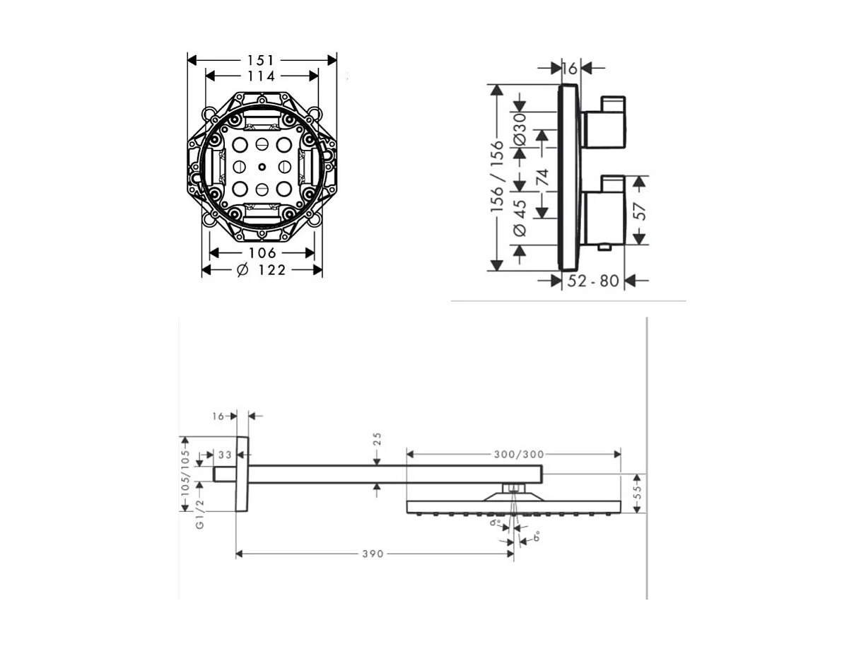 Lot robinet douche encastré thermostatique HANSGROHE Ecostat Square + Douche de tête Raindance E 300
