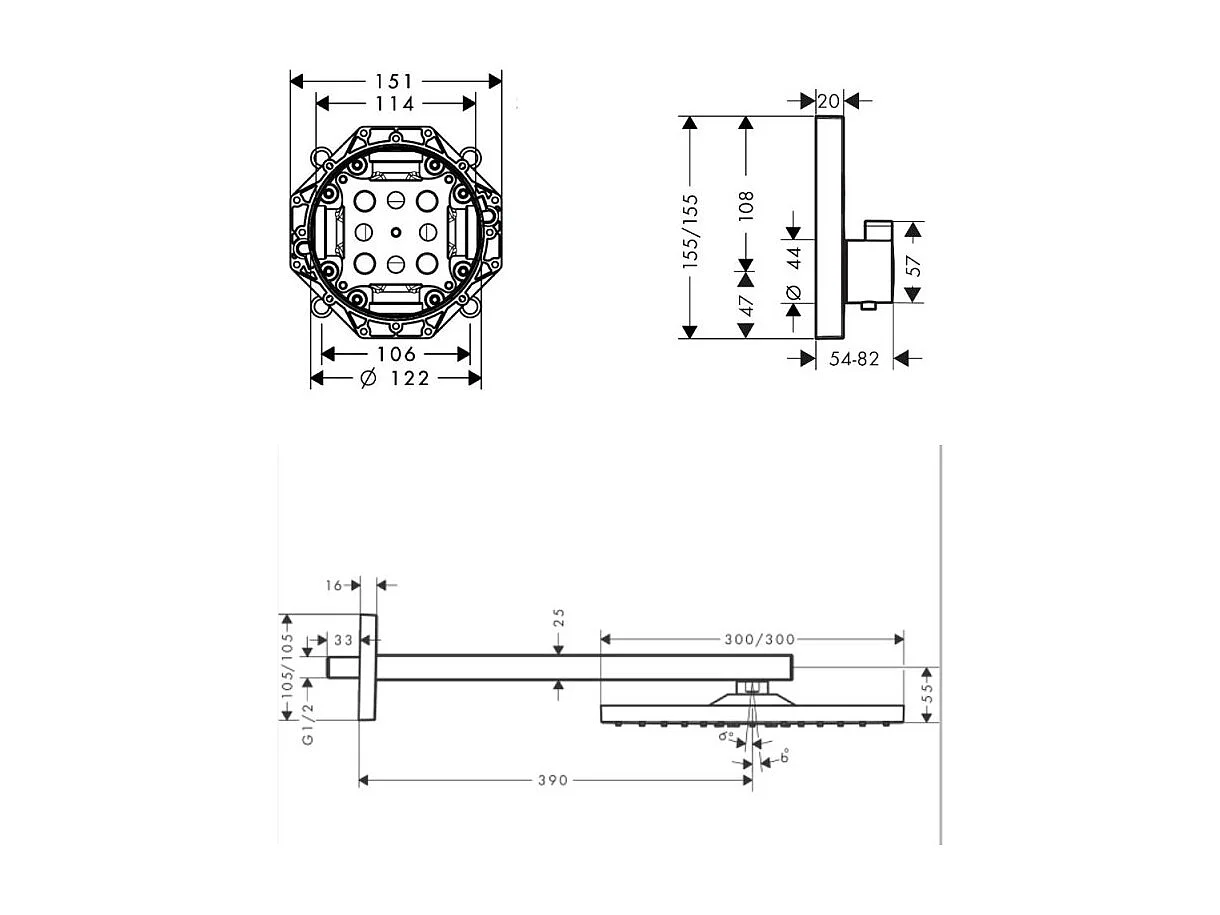 Lot robinet douche encastré thermostatique HANSGROHE ShowerSelect + Douche de tête Raindance E 300 fixation murale