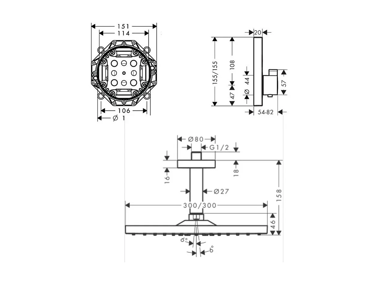 Lot robinet douche encastré thermostatique HANSGROHE ShowerSelect + Douche de tête Raindance E 300 fixation plafond