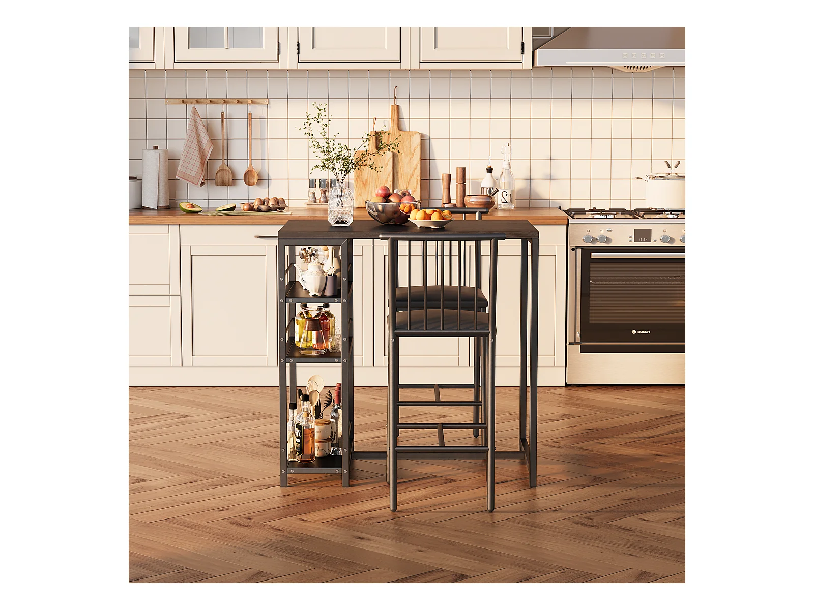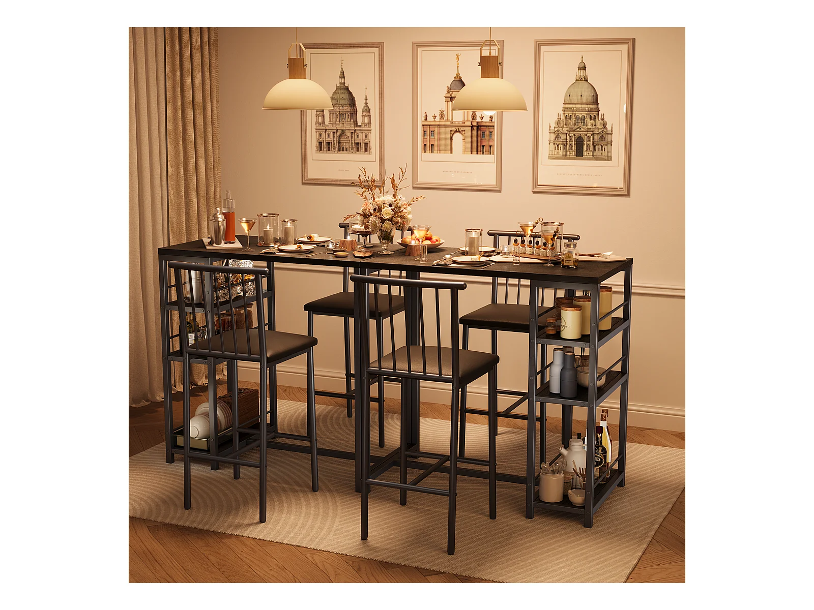 Bealife Table Haute Mange Debout 2 Tabouret Table de Bar Cuisine Ensemble de Meubles de Salle à Manger Cadre en Acier Noir
