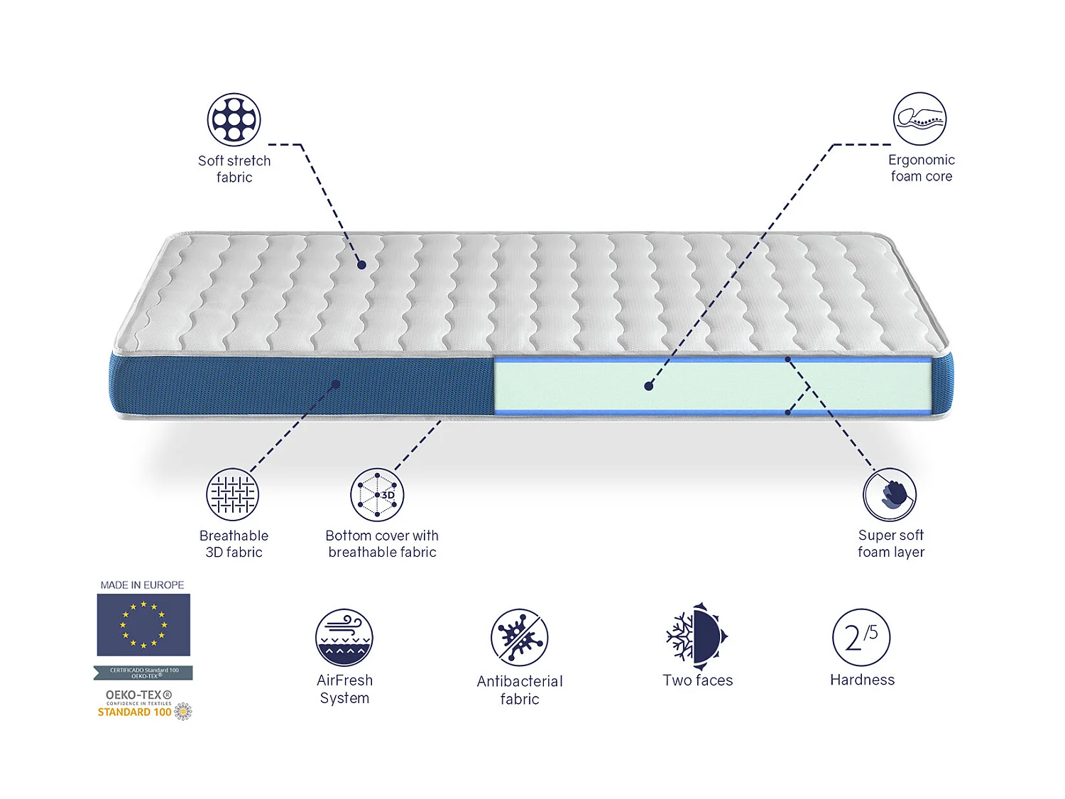 LOT X2 Matelas en mousse respirante 80X180 ONIX, Epaisseur 14 CM , Ergonomique et adaptable