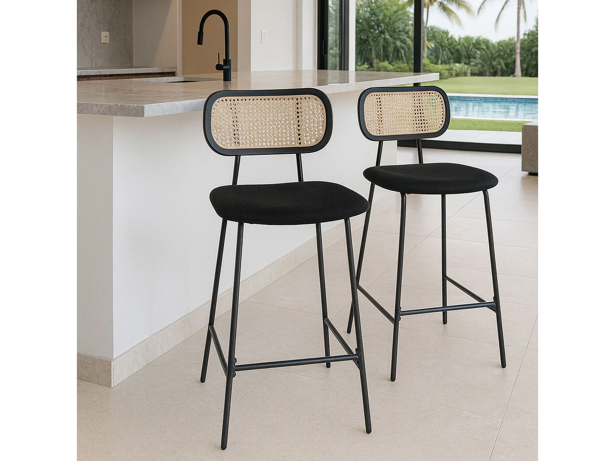 Now's Home - Lot De 2 Chaises De Bar En Bois Et Velours Noir