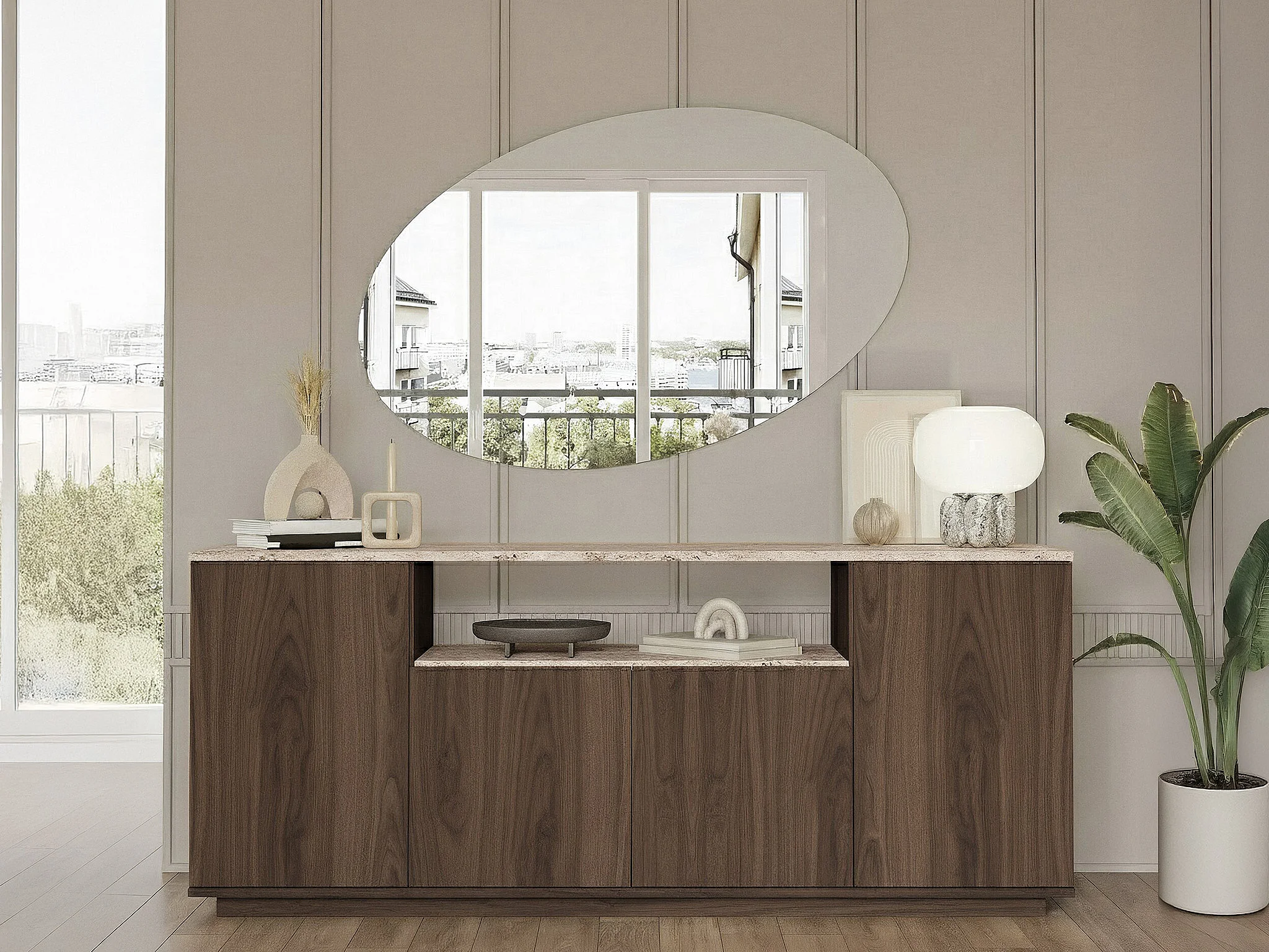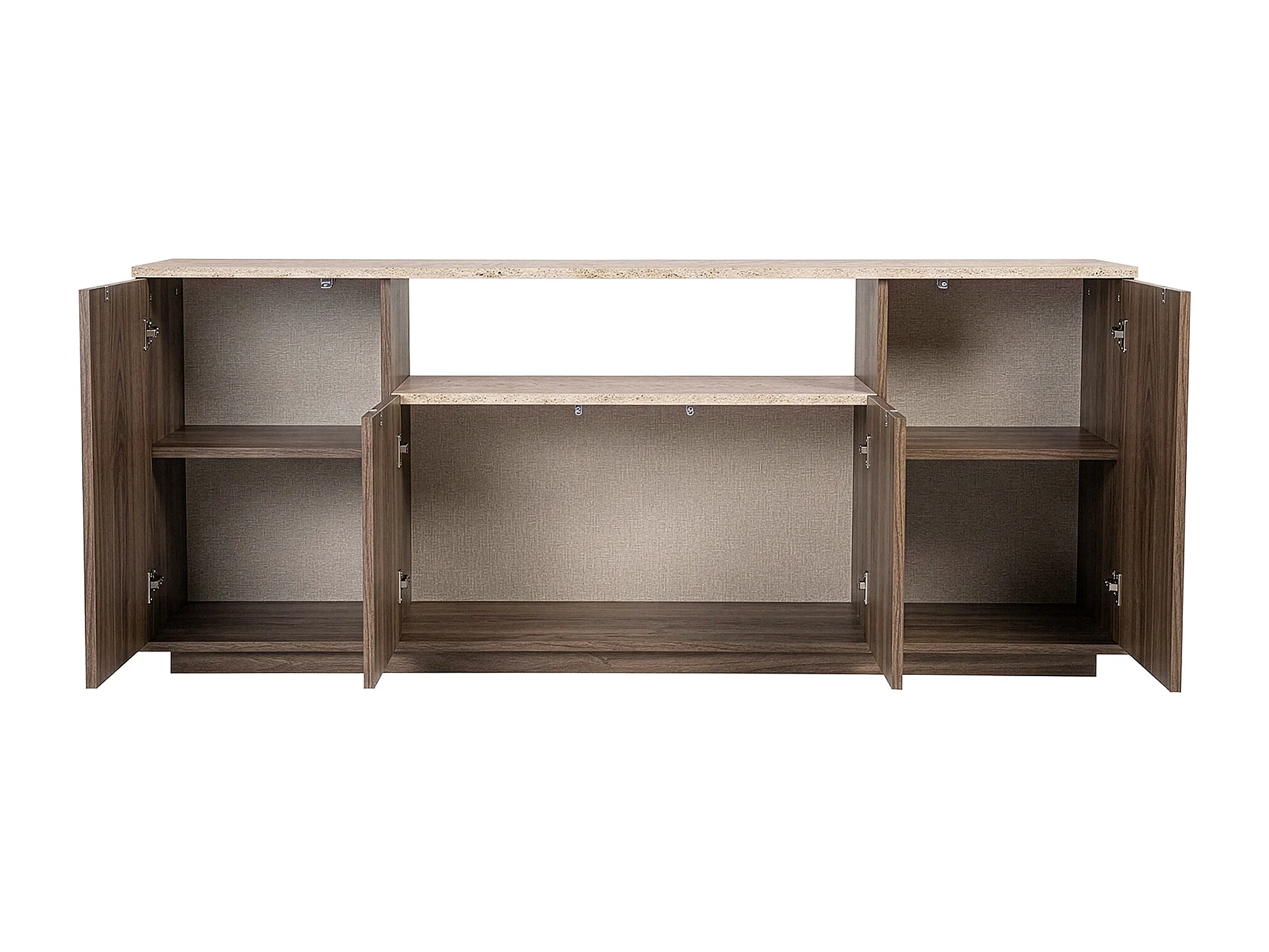 Buffet avec 4 portes et 1 étagère - Naturel foncé et effet travertin beige - LOTULA