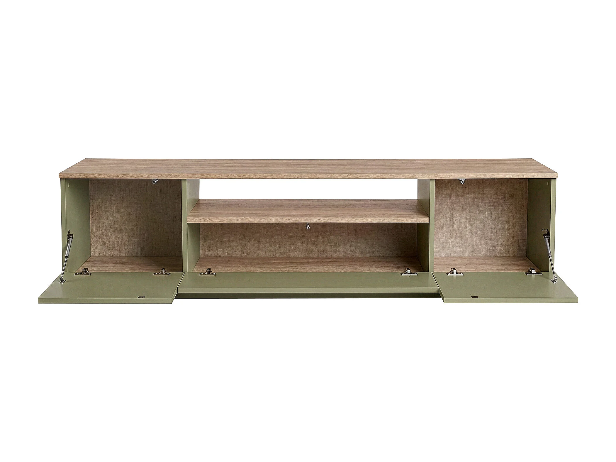 Meuble TV avec 3 portes et 1 niche - Vert sauge et naturel - LOTULA