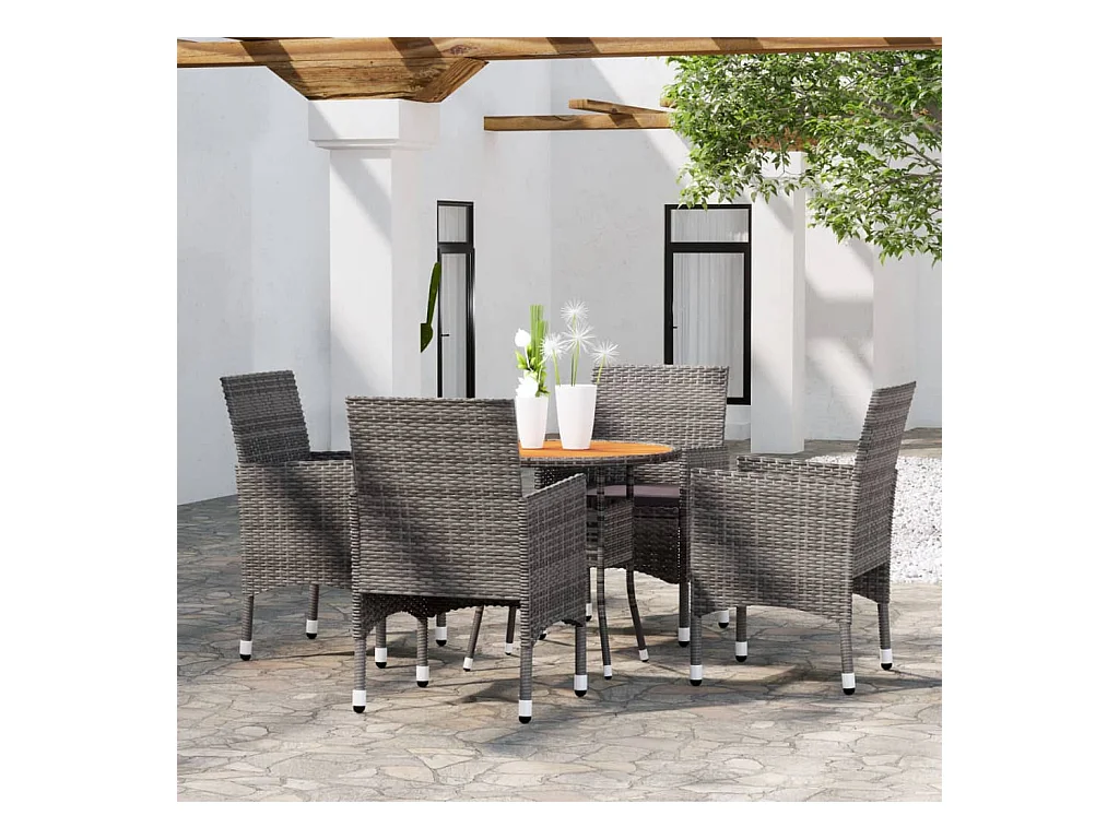 Louis-Mathieu-Paul Ensemble à manger de jardin 5 pcs Résine tressée Gris