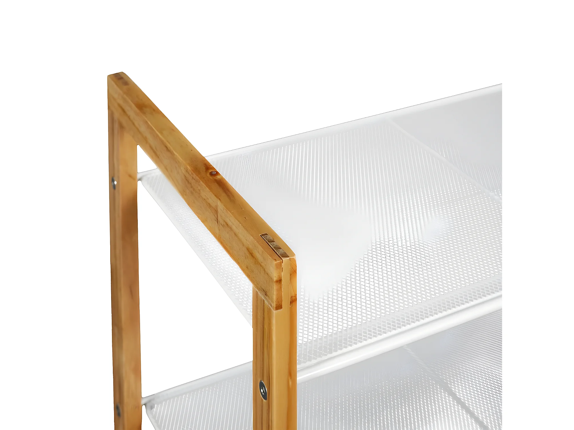 LOVIA - Meuble à Chaussures 3 Etages Métal Blanc et Bois