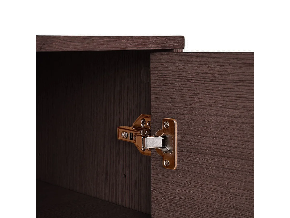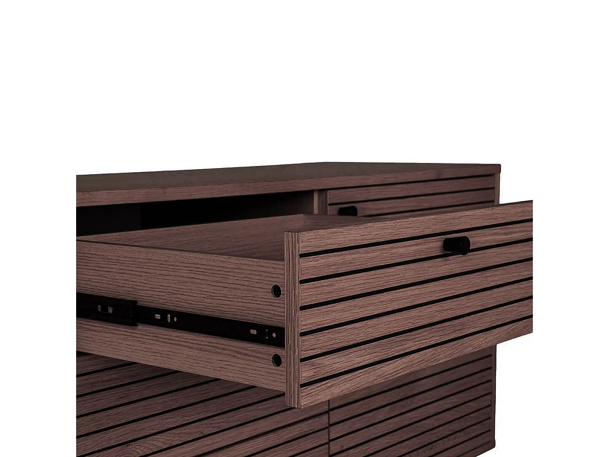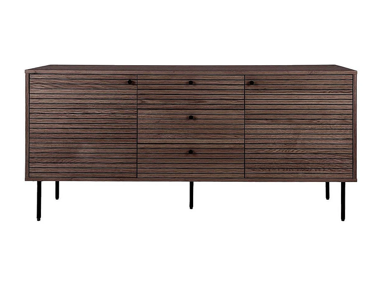 LOWAN - Buffet 3 Tiroirs 2 Portes Effet Tasseaux Teinté Chêne Foncé