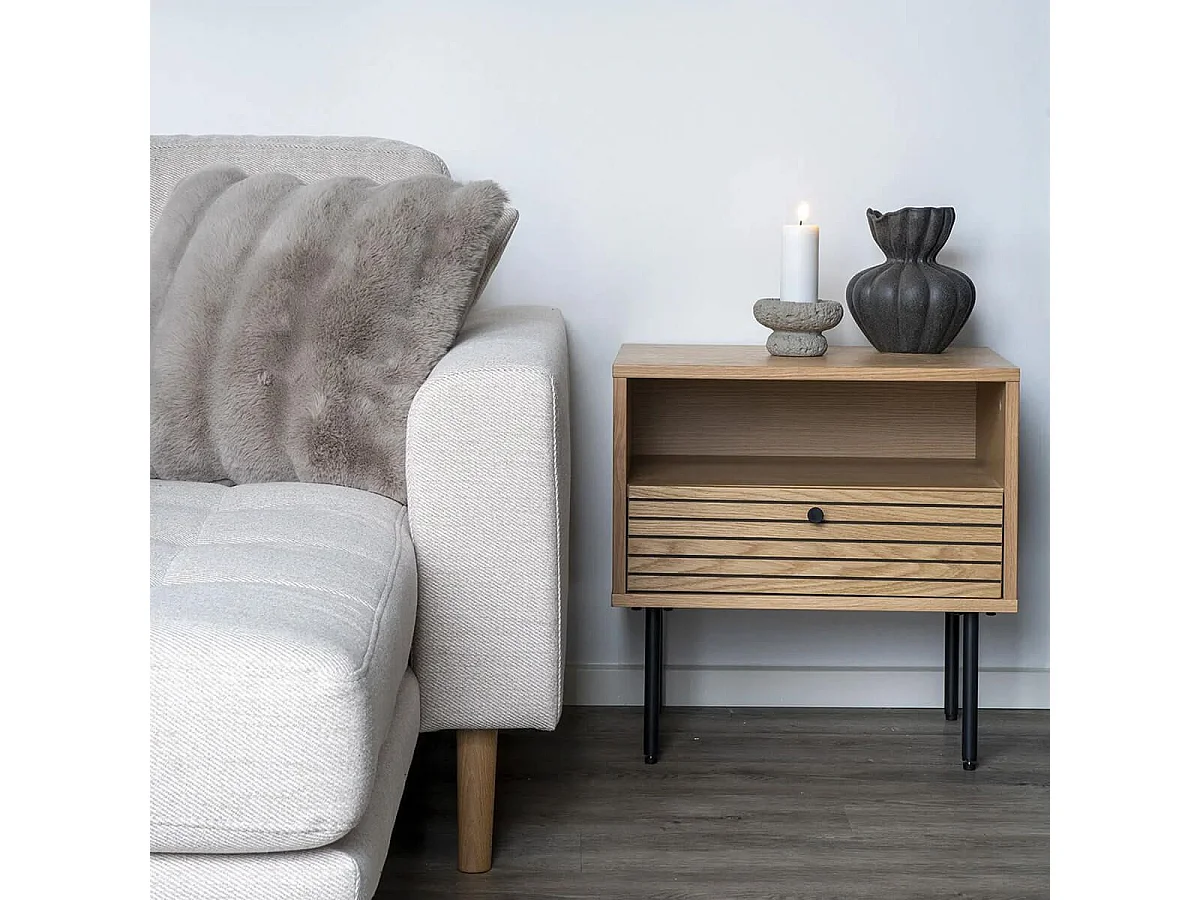 LOWAN - Chevet 1 Tiroir Effet Tasseaux Teinté Chêne Clair