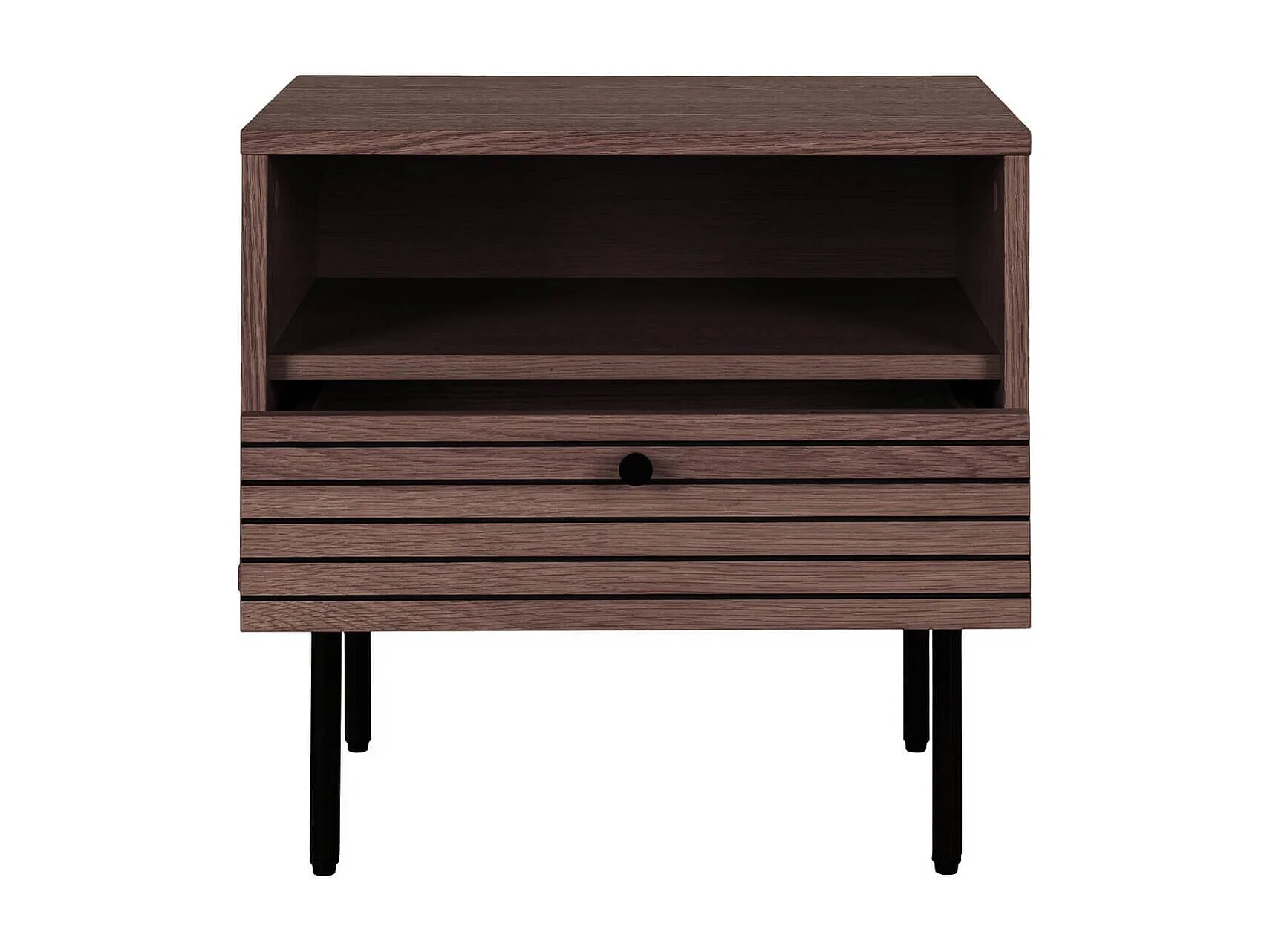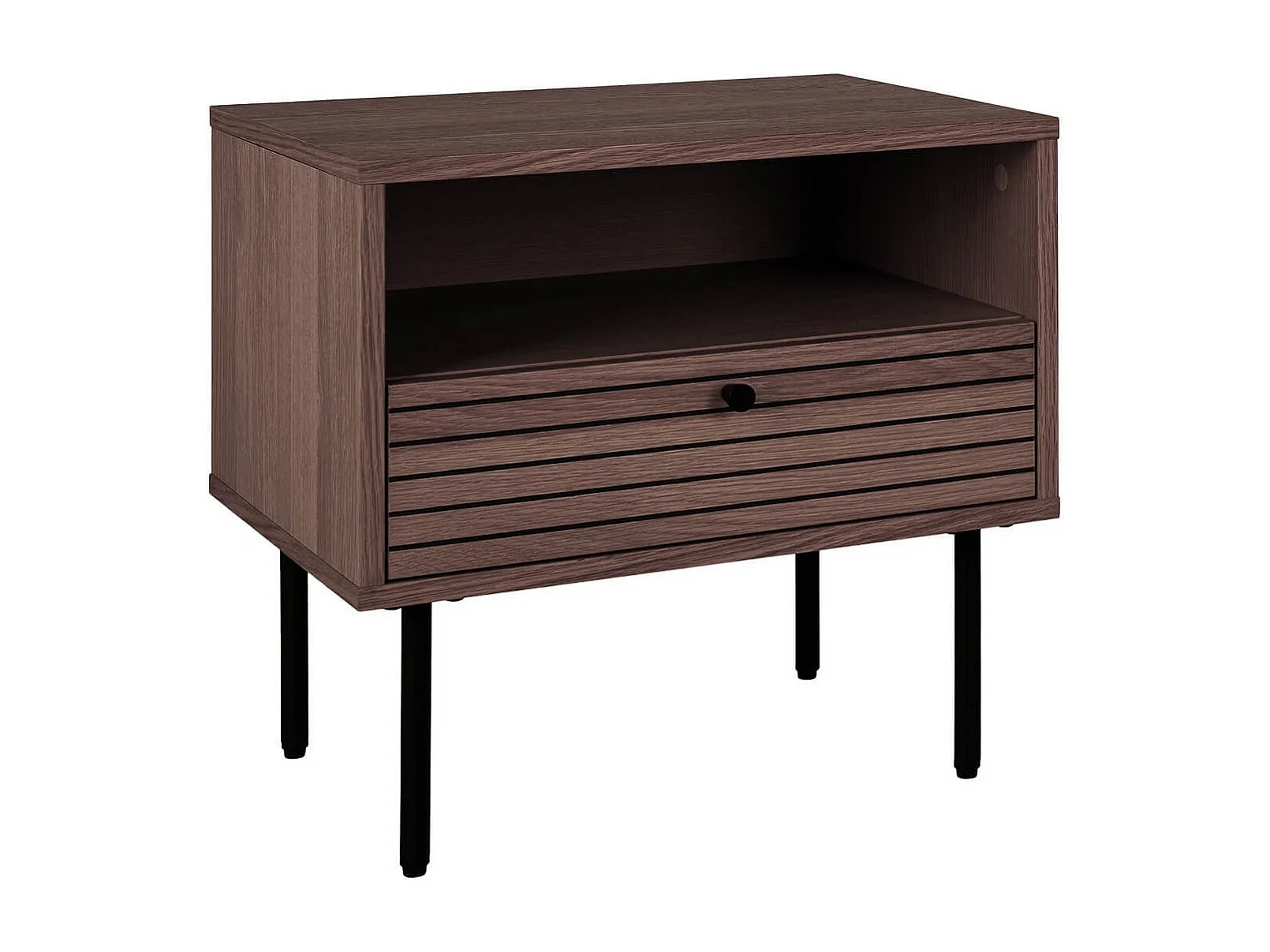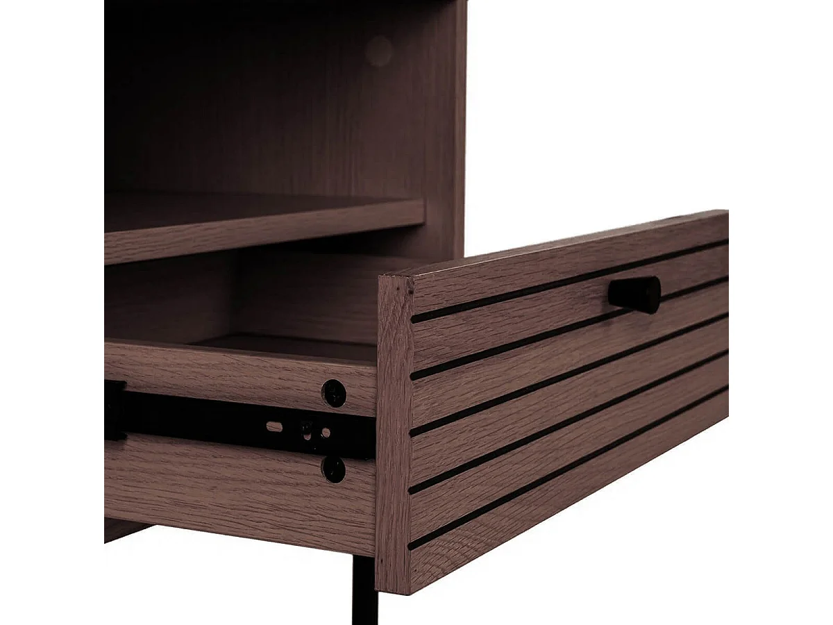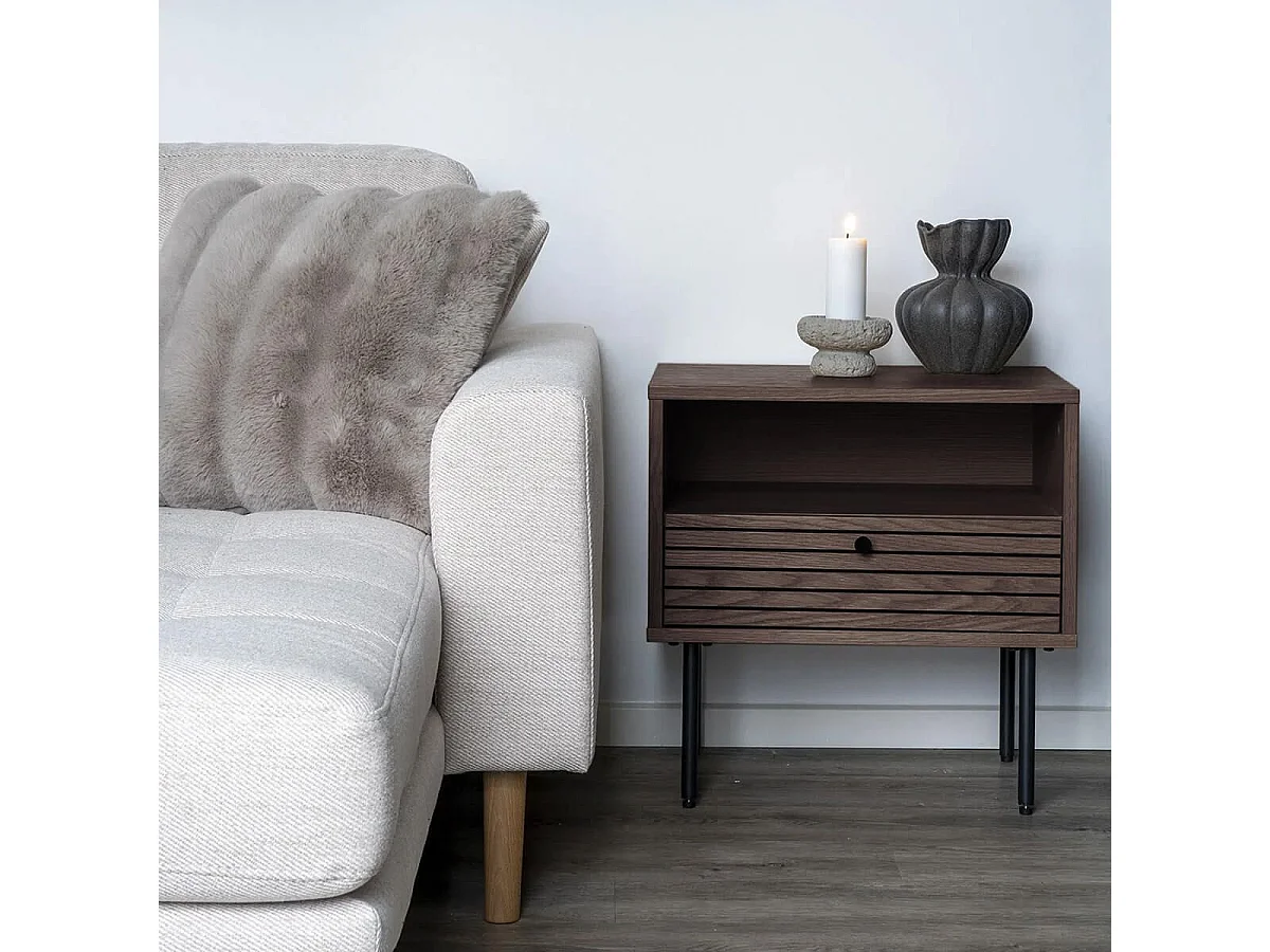 LOWAN - Chevet 1 Tiroir Effet Tasseaux Teinté Chêne Foncé