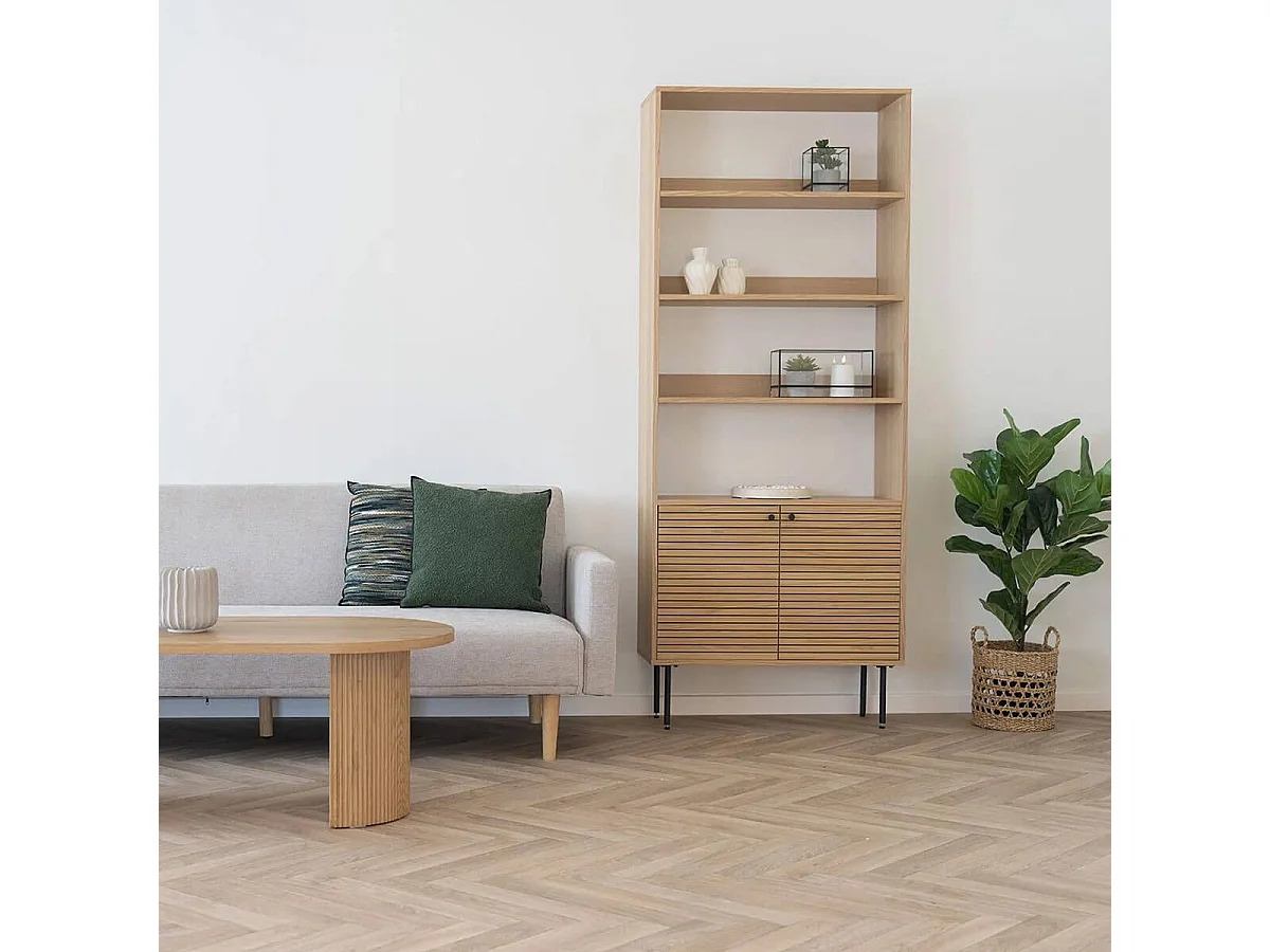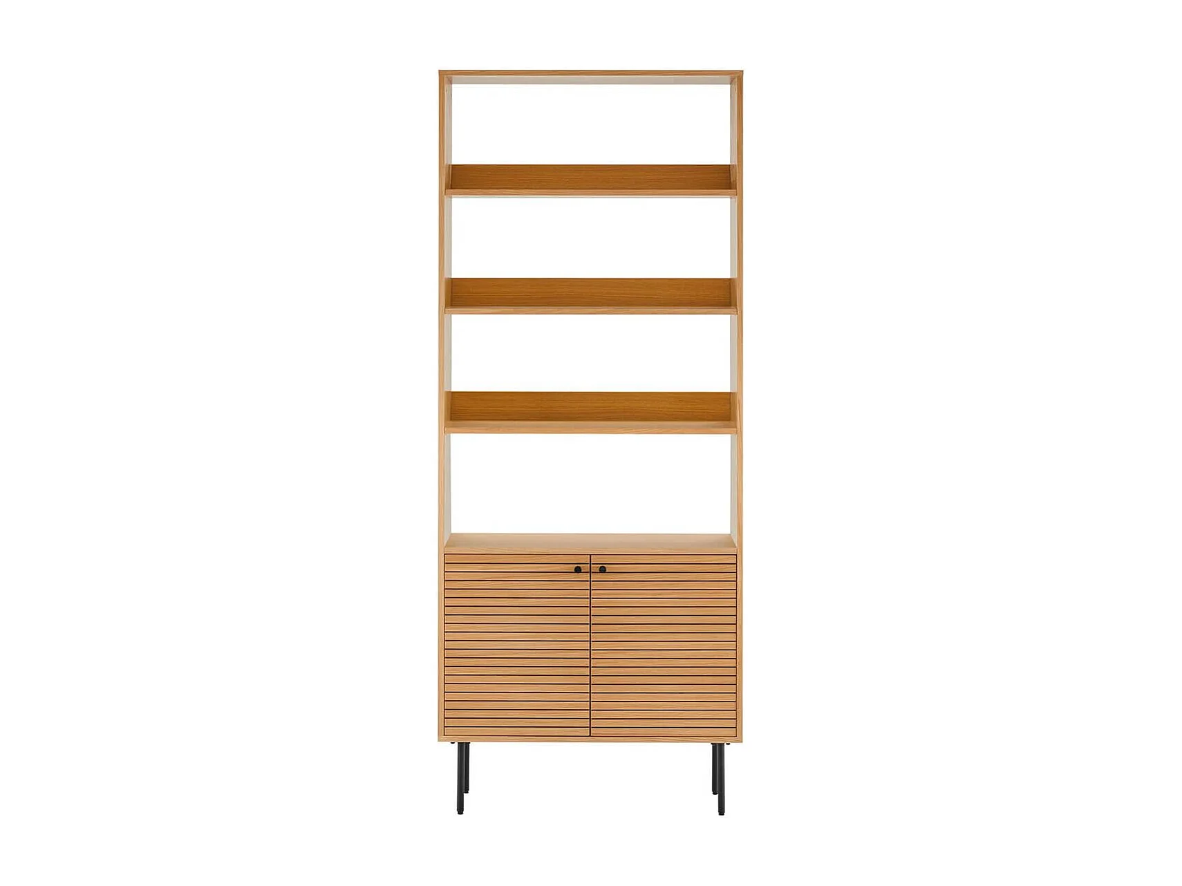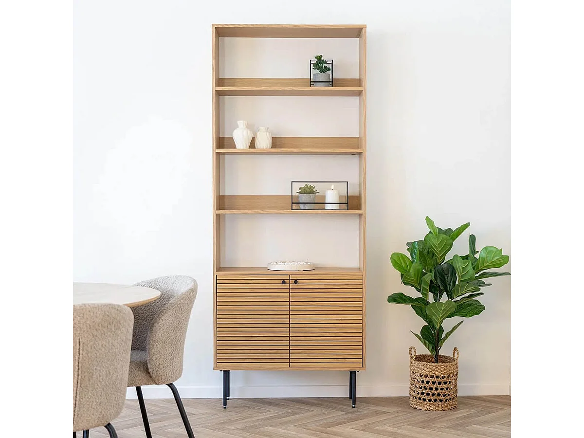 LOWAN - Etagère 4 Niveaux et 2 Portes Effet Tasseaux Teinté Chêne Clair