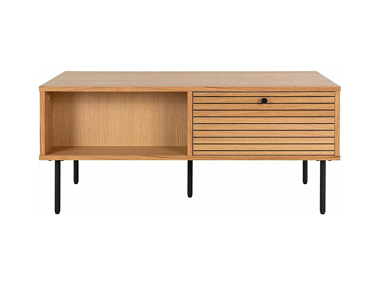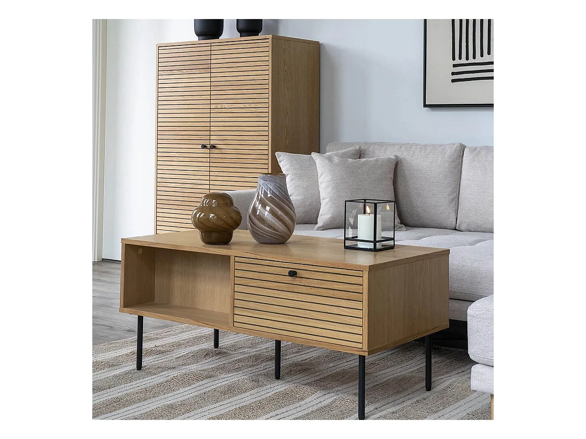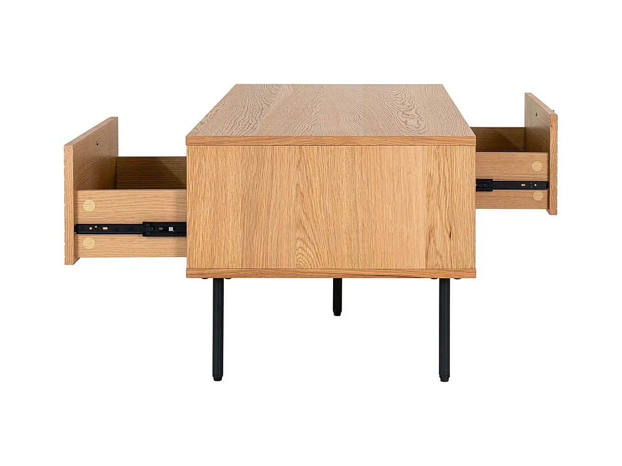LOWAN - Table basse 2 Tiroirs Effet Tasseaux Teinté Chêne Clair