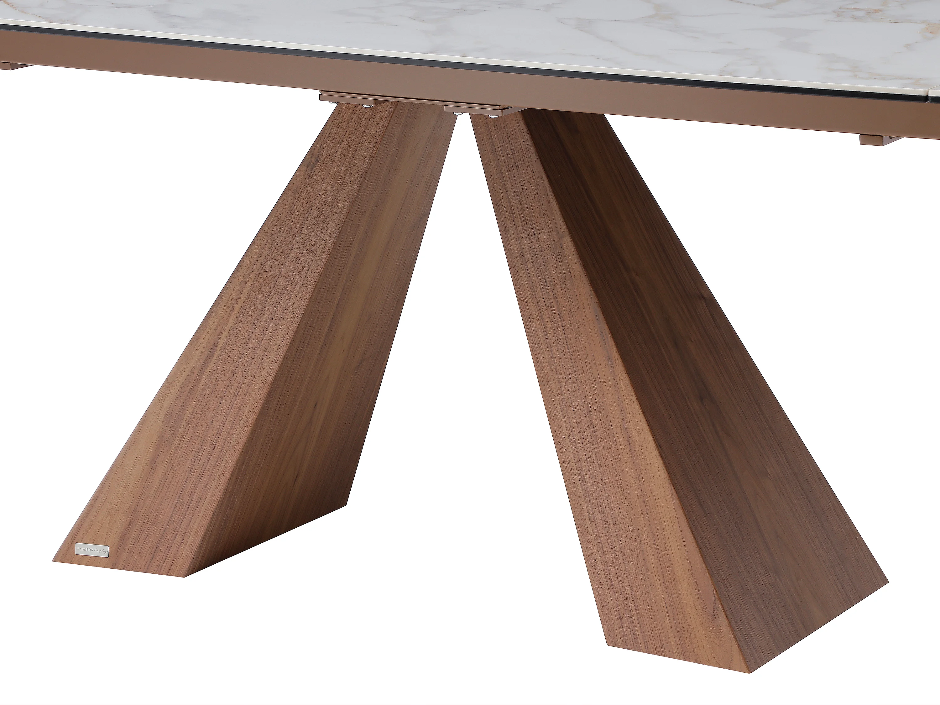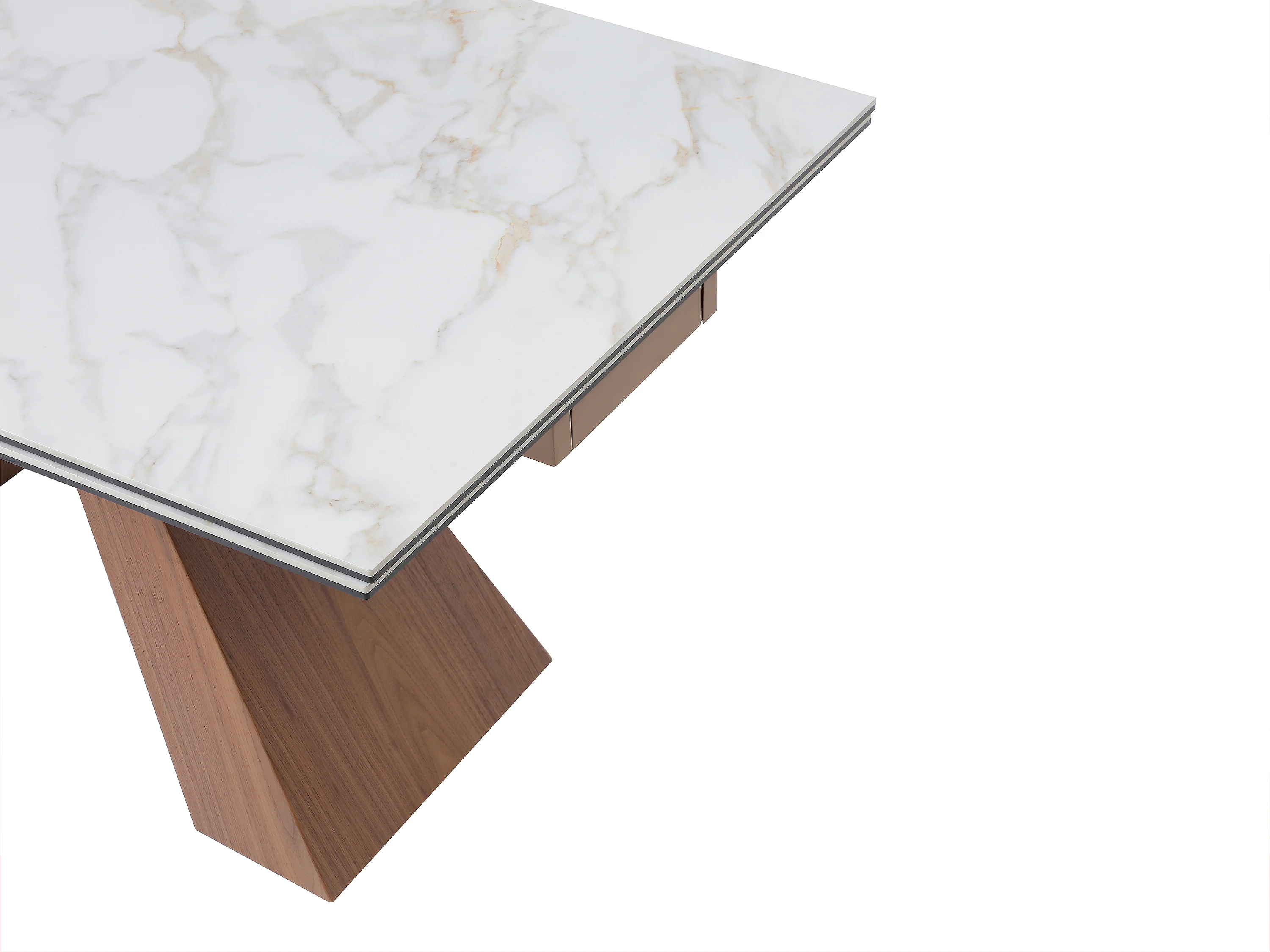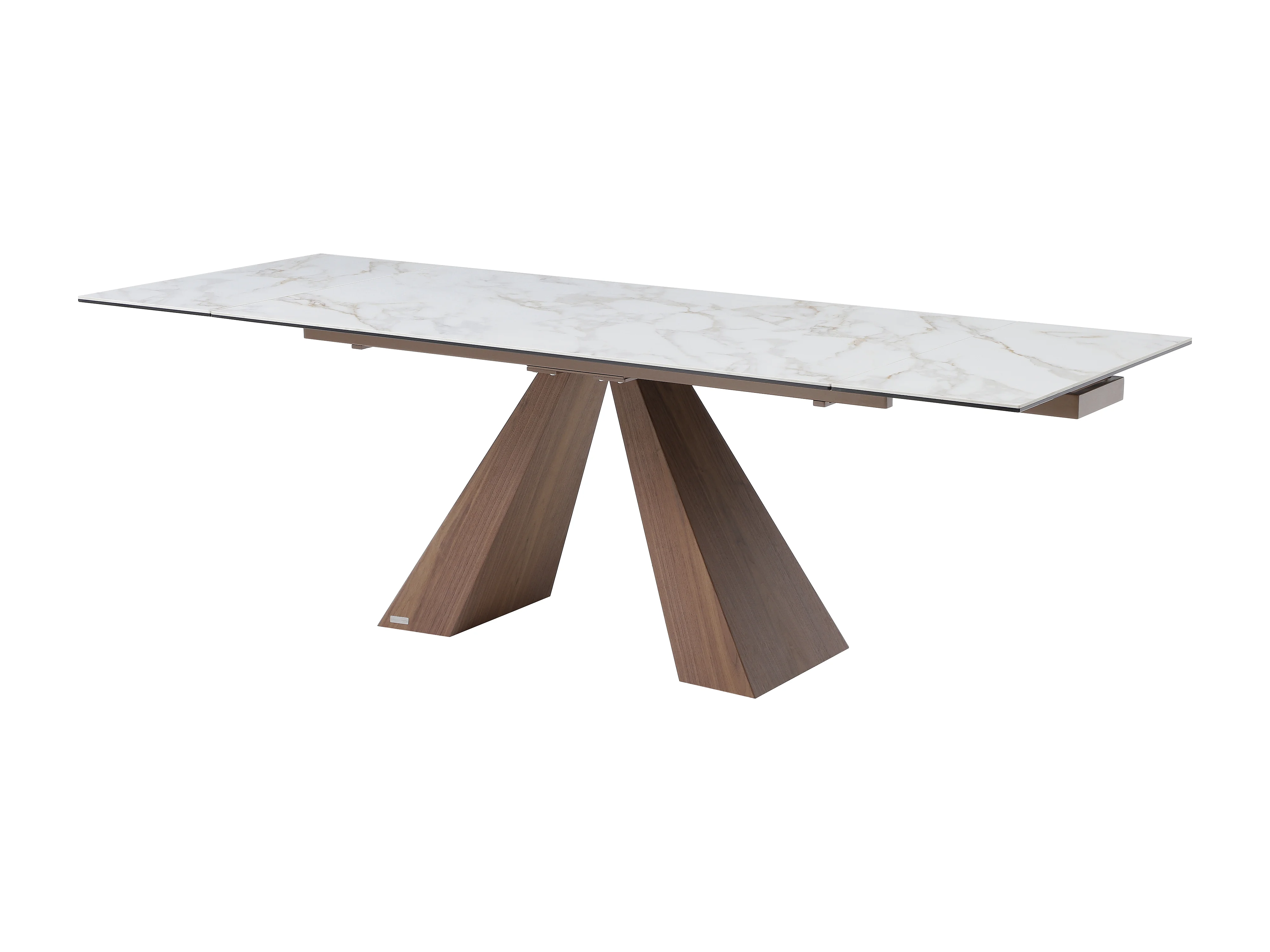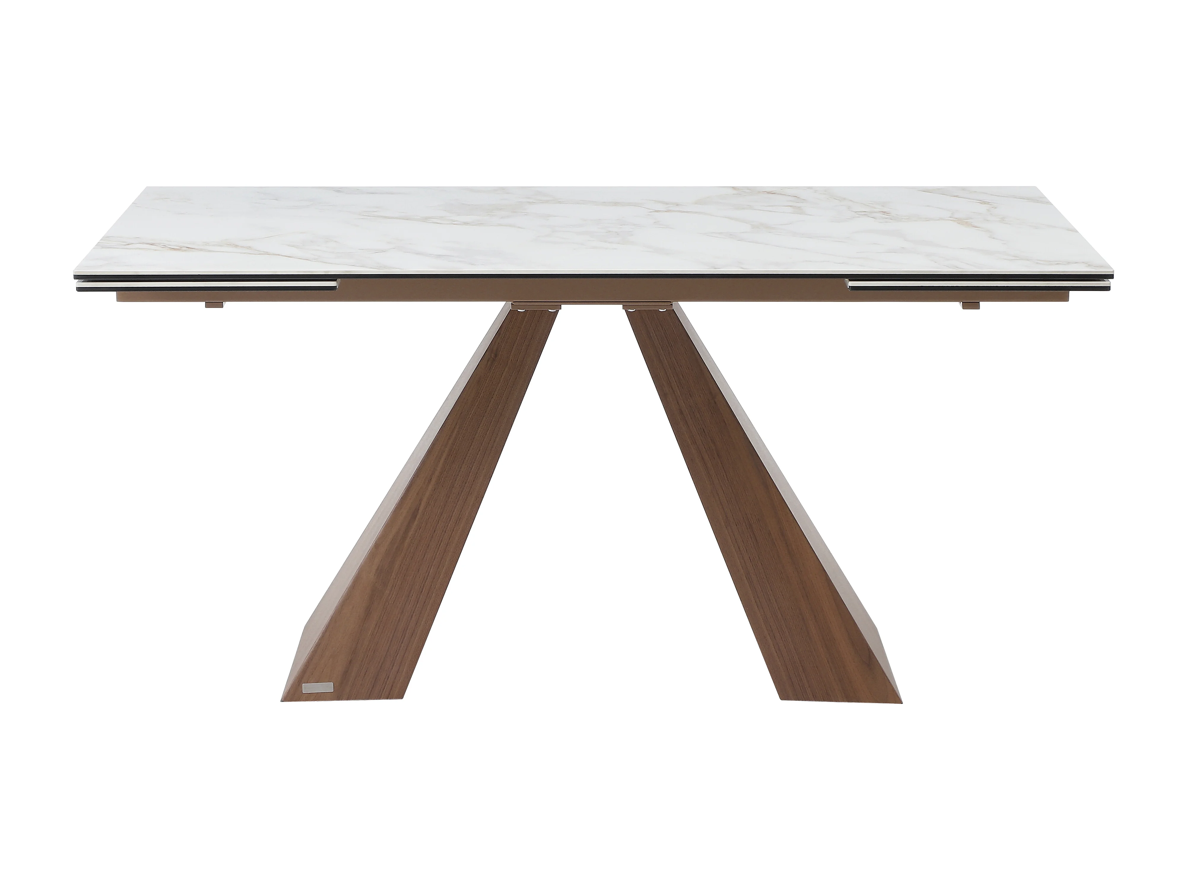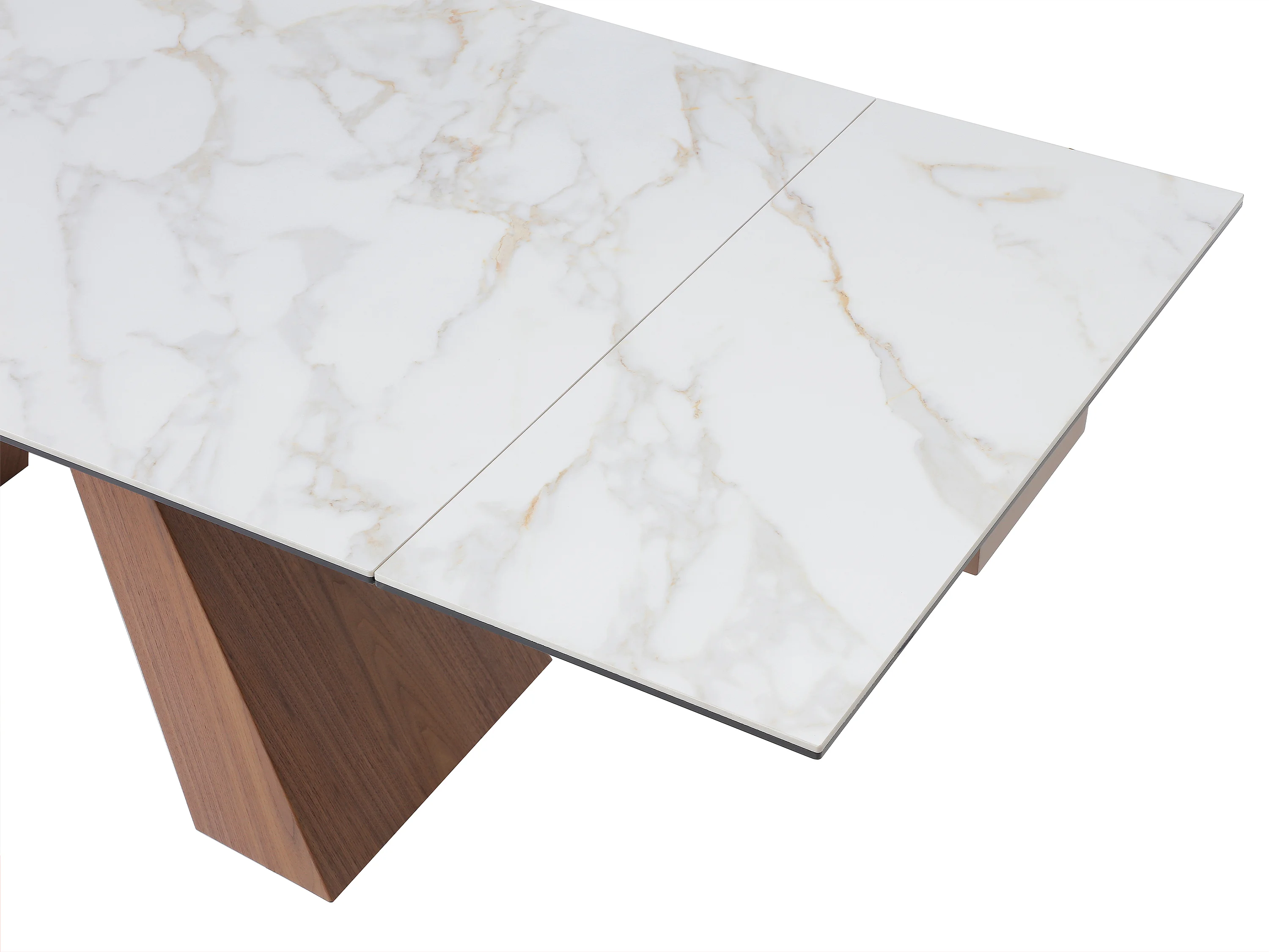 Table à manger extensible 6 à 10 personnes en céramique, verre trempé et placage noyer - Effet marbre blanc - LOZIPA de Maison Céphy