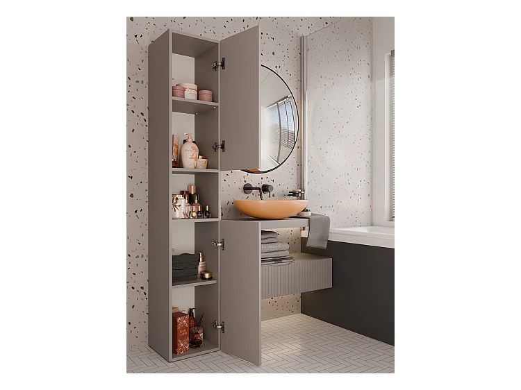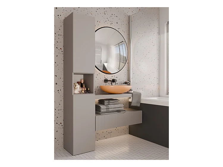 LUANA - Meuble salle de bain 2 portes - 31x30x174 cm - Colonne rangement SDB - Gris