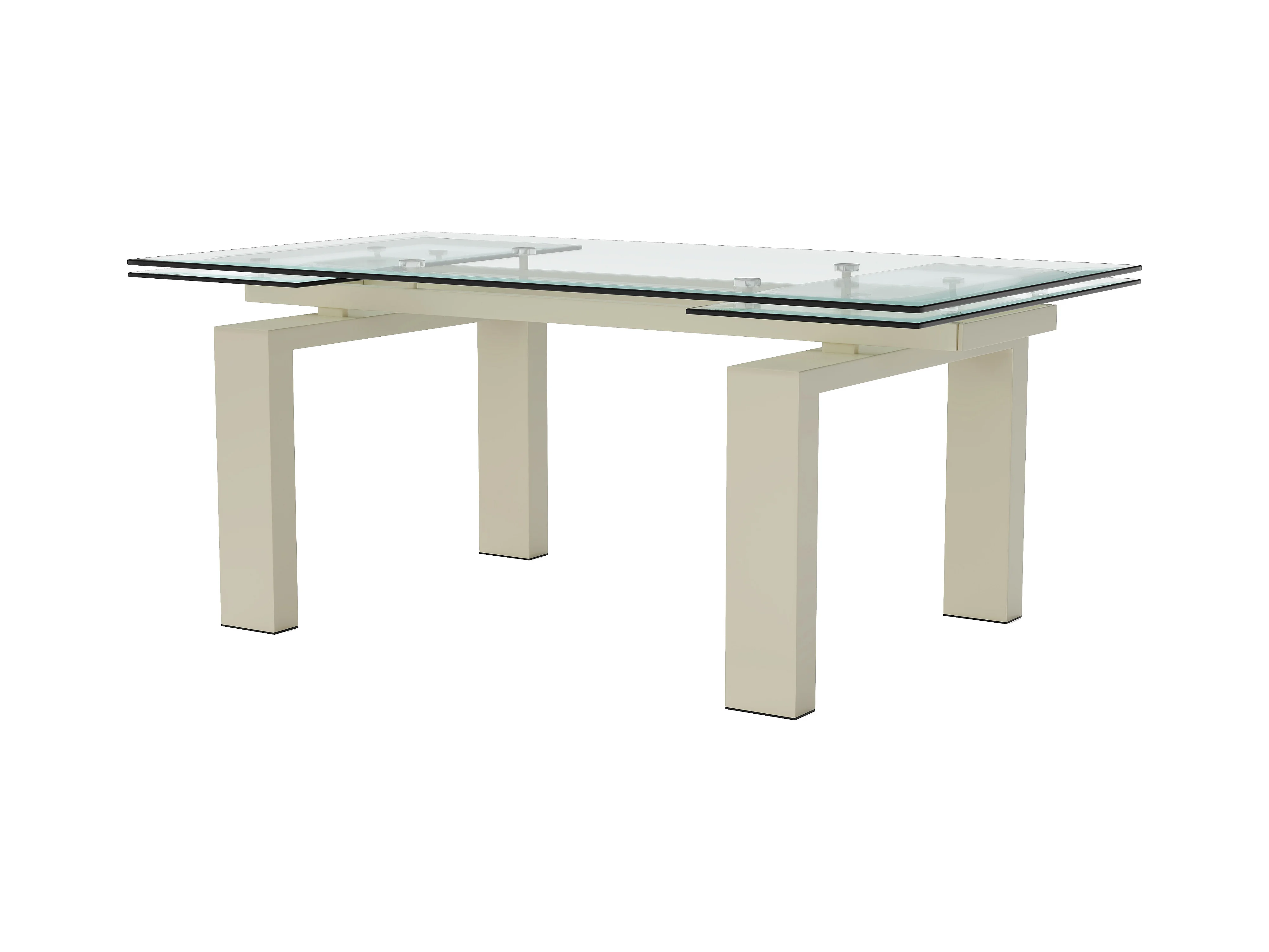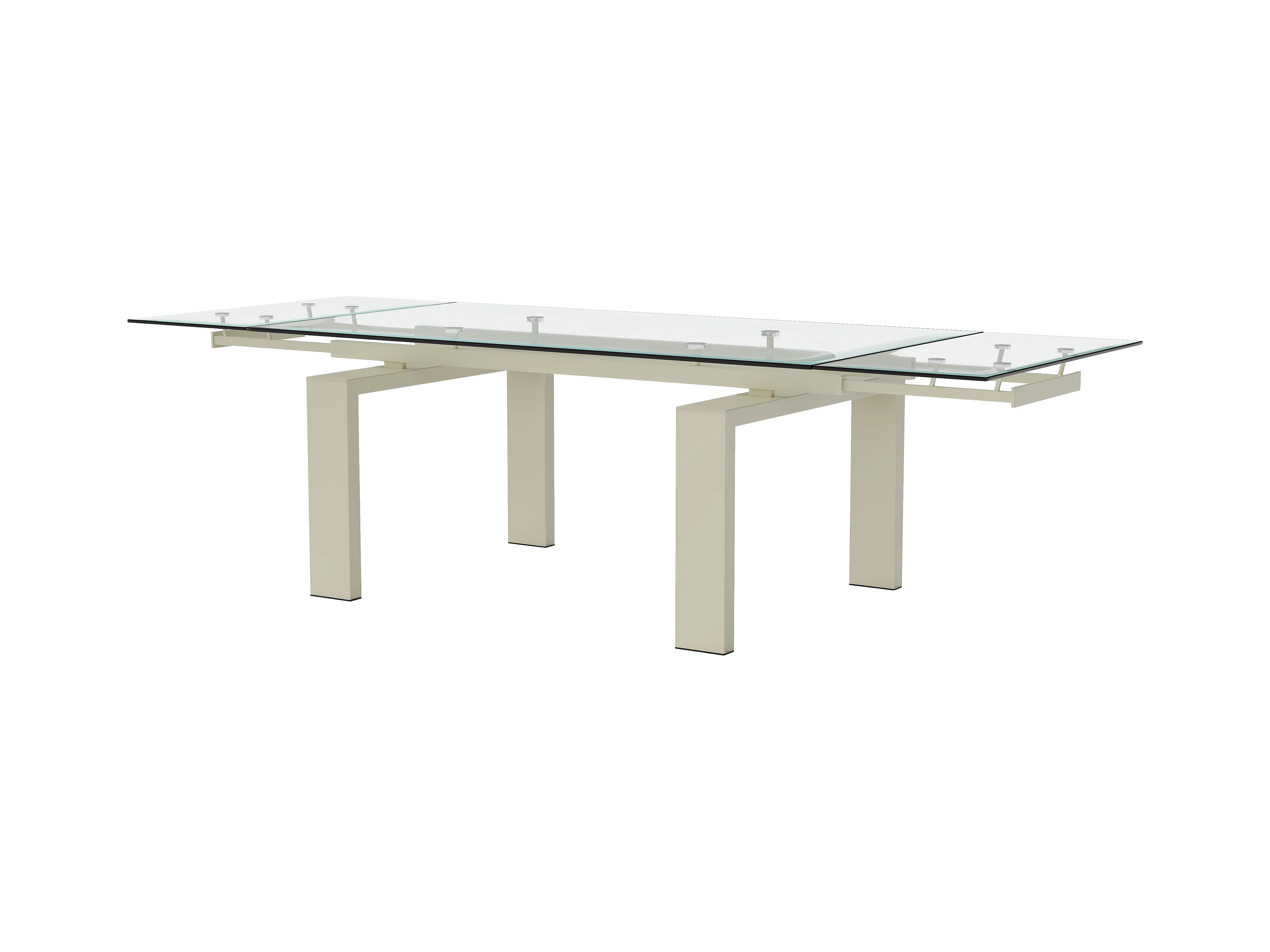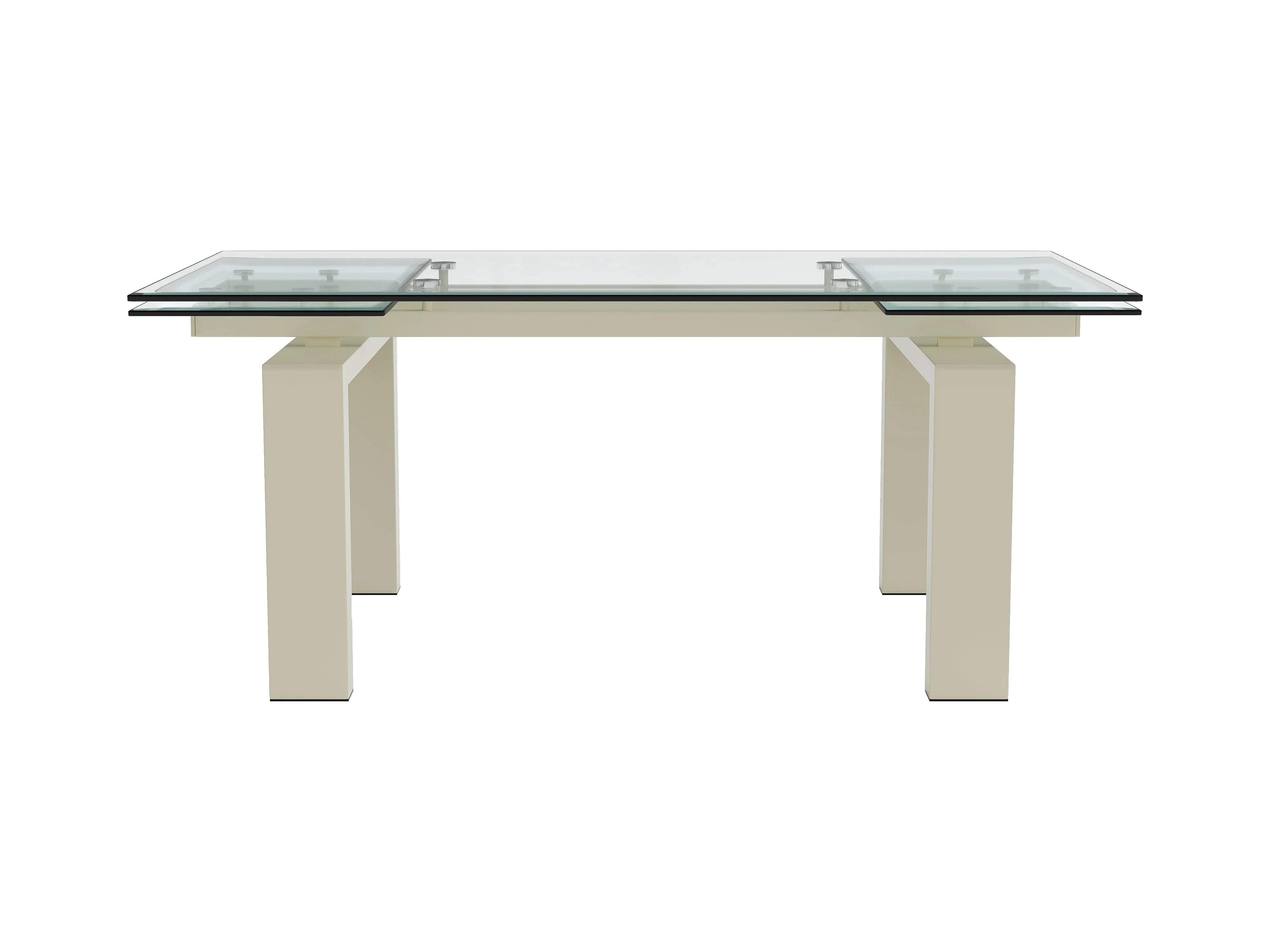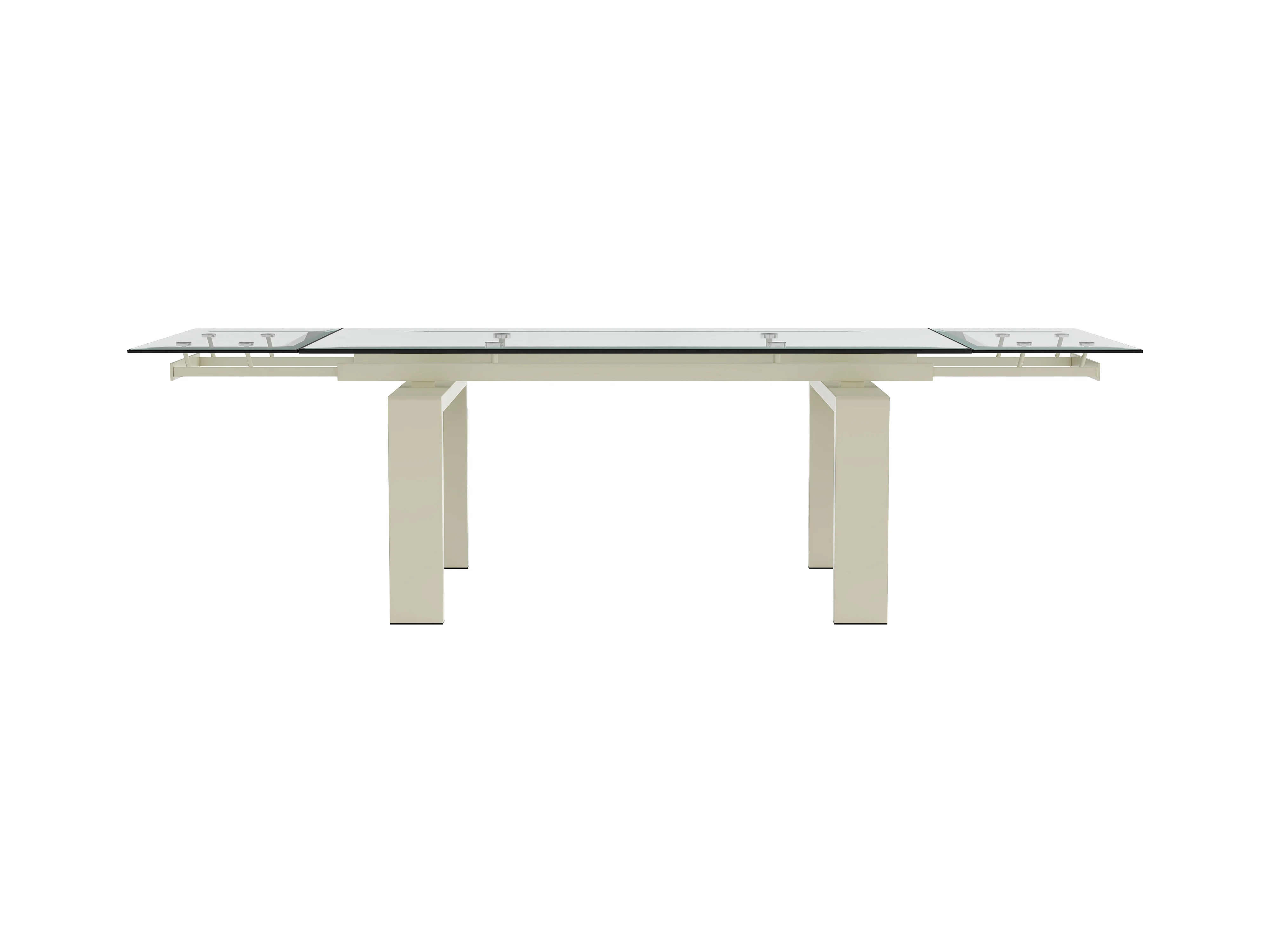 Table à manger extensible 8 à 10 personnes en verre trempé et métal beige - Transparent - LUBANA