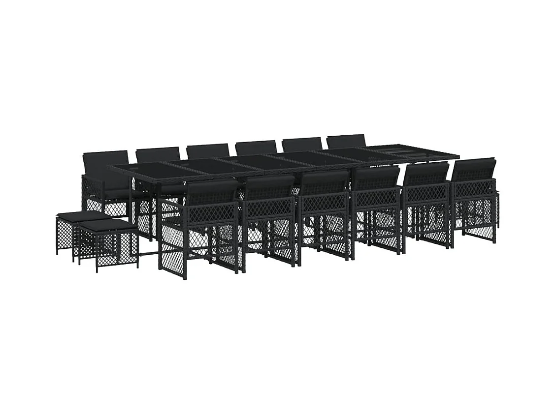 Lubbeek Ensemble à manger de jardin 17 pcs coussins noir résine tressée