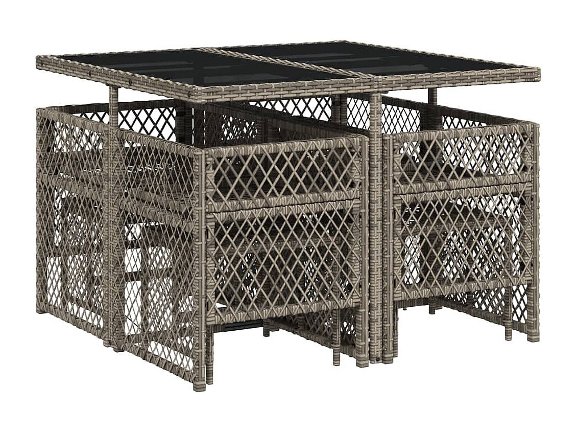 Lubbeek Ensemble à manger de jardin 9 pcs coussins gris résine tressée