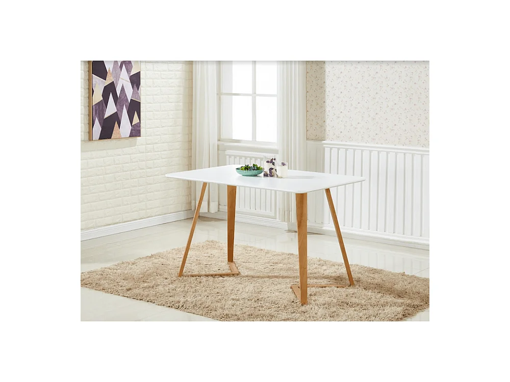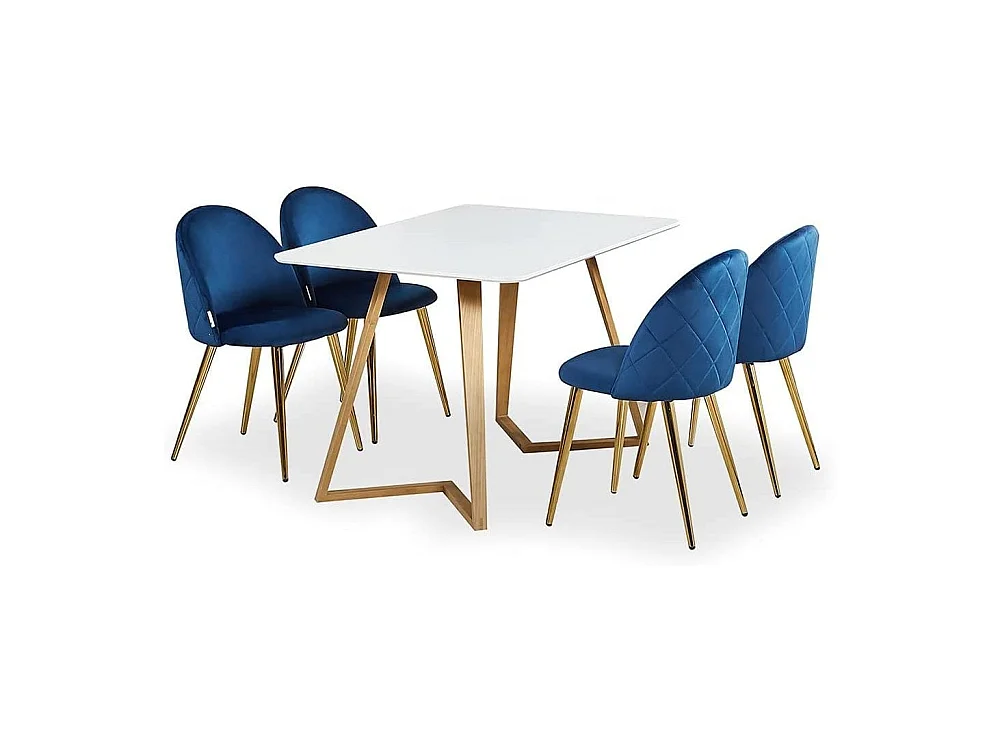 LUCIA DALLAS - Table à Manger Rectangulaire Blanche + 4 Chaises en Velours Bleues - Style Scandinave