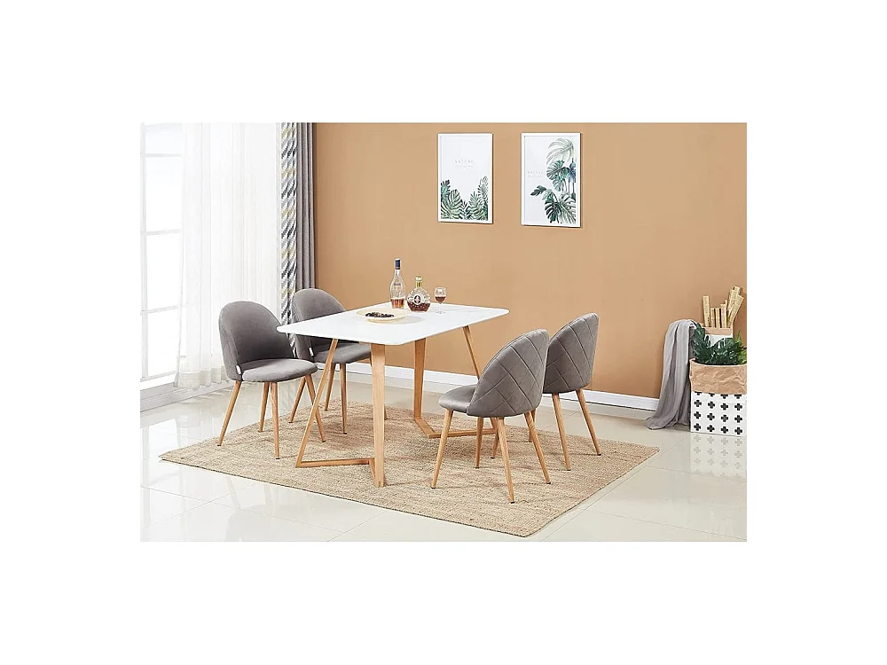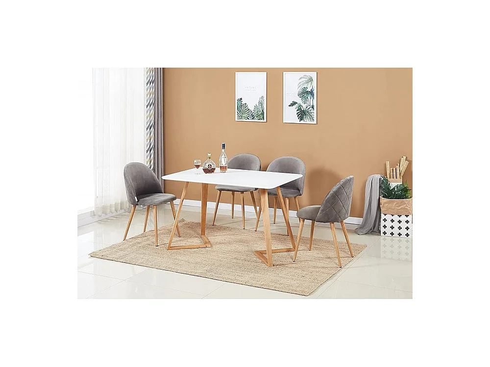 LUCIA DALLAS - Table à Manger Rectangulaire Blanche + 4 Chaises en Velours Grises - Style Scandinave