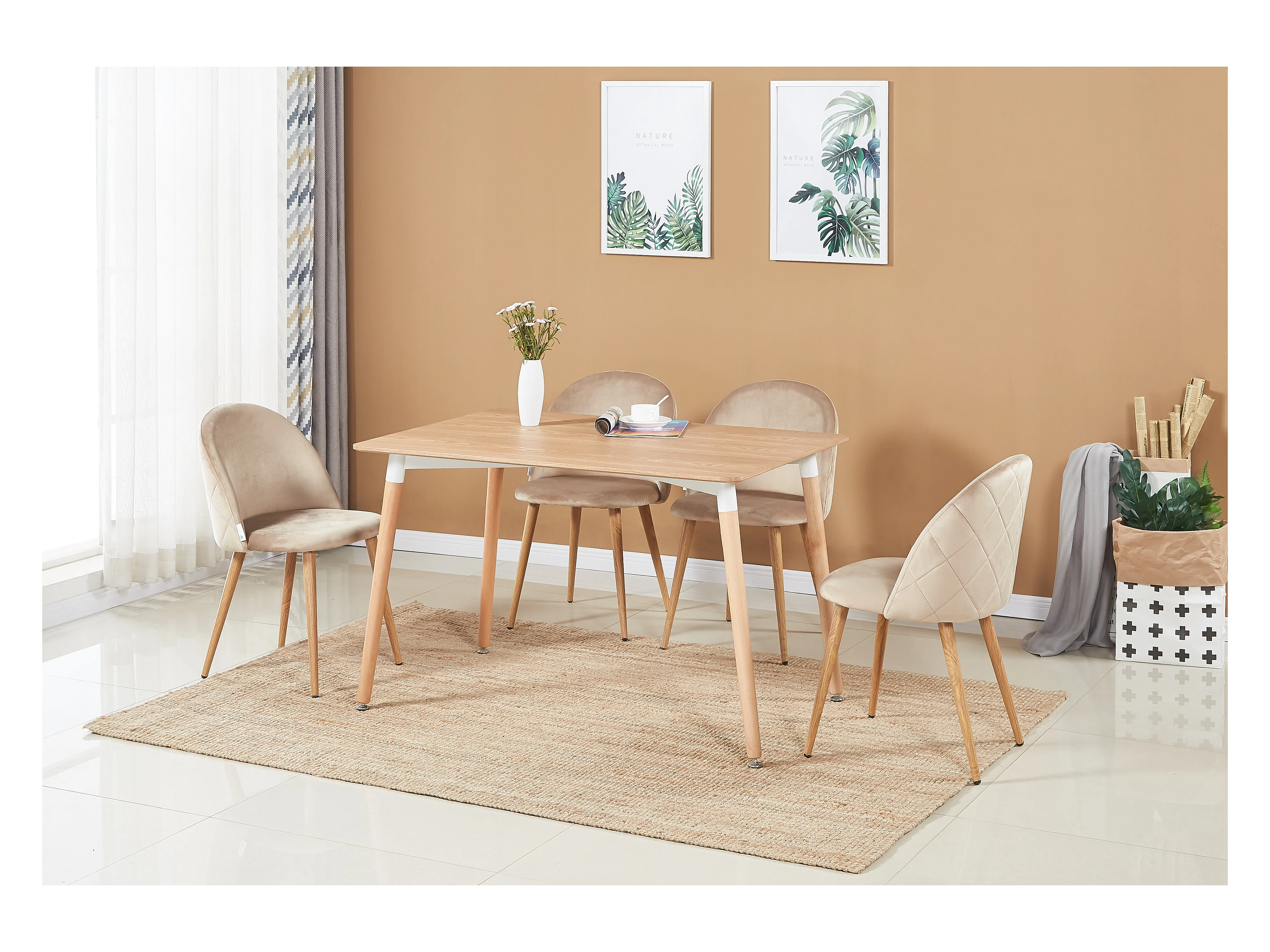 LUCIA - Table à Manger Rectangulaire Effet Chêne + 4 Chaises en Velours Beiges - Style Scandinave
