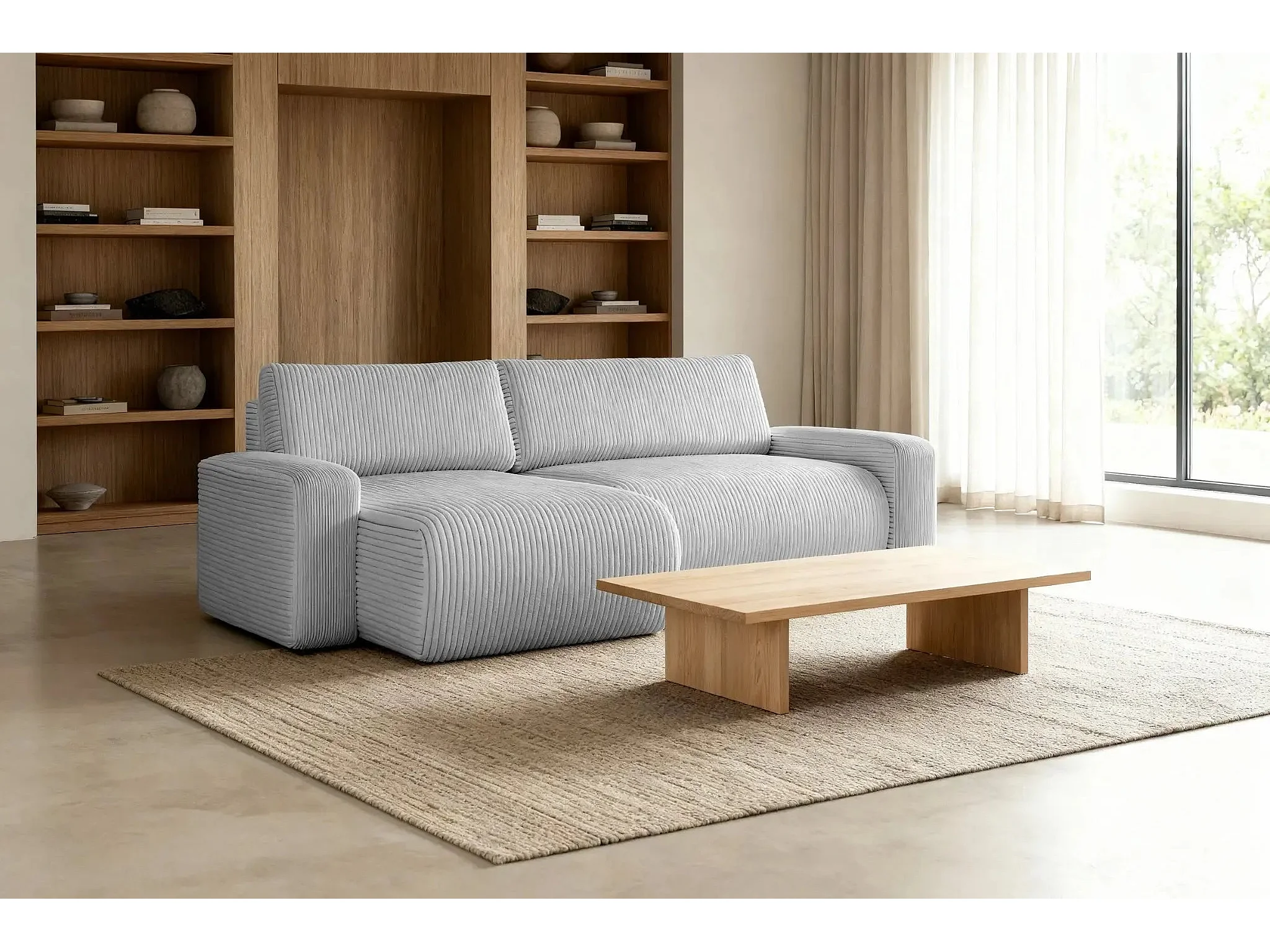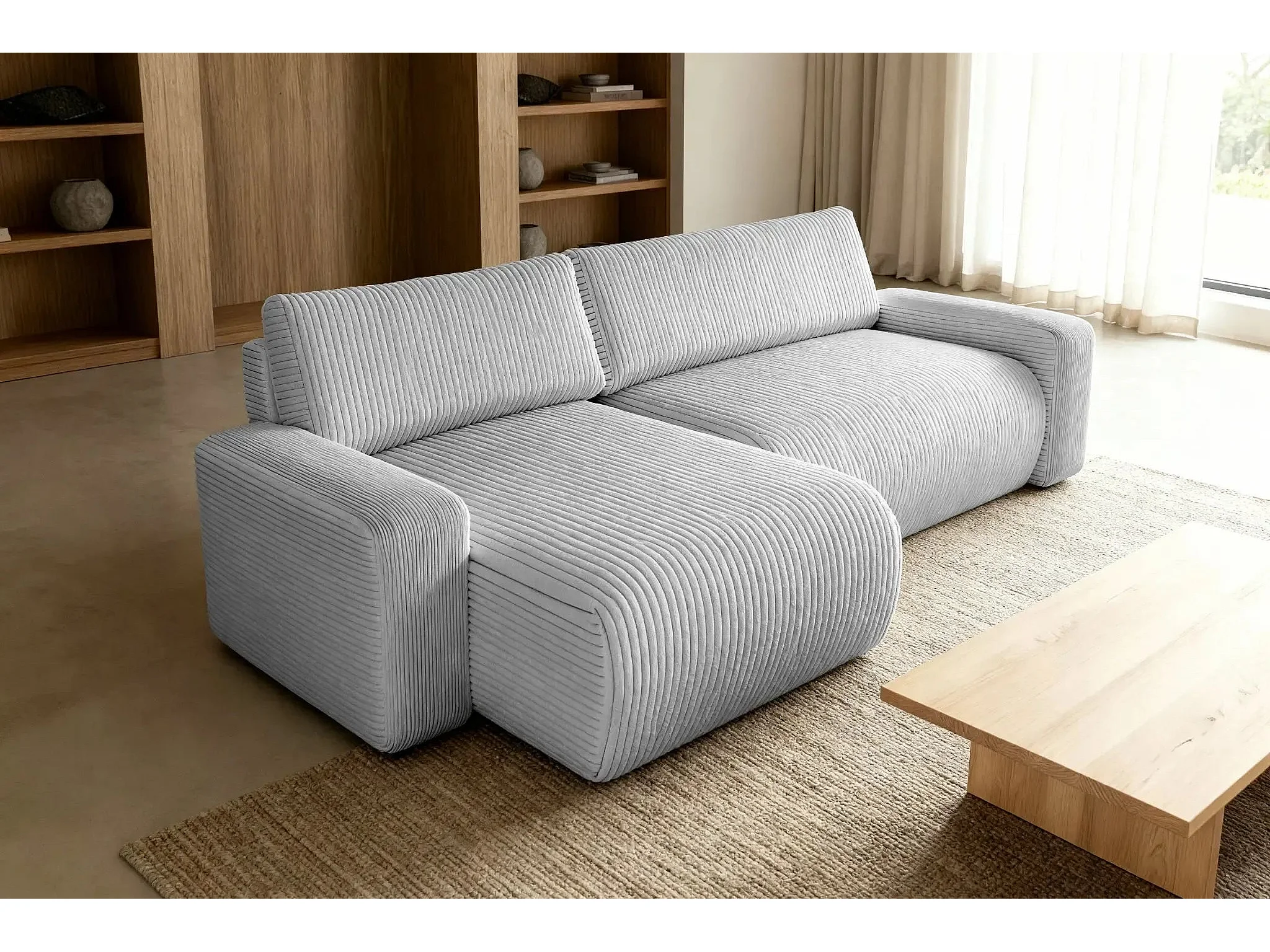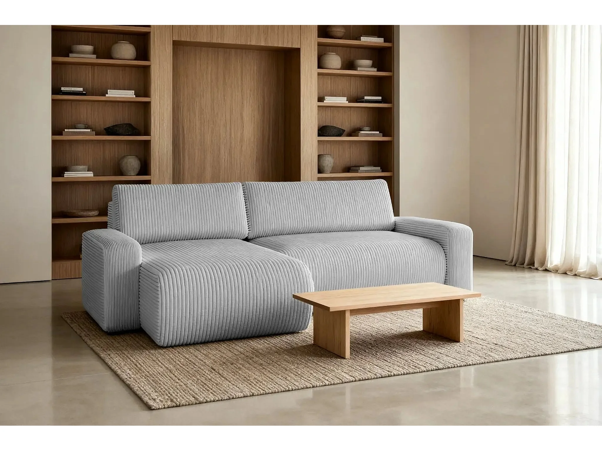 LUCIE - Canapé d'angle velours cotelé 4 places - Gris Clair
