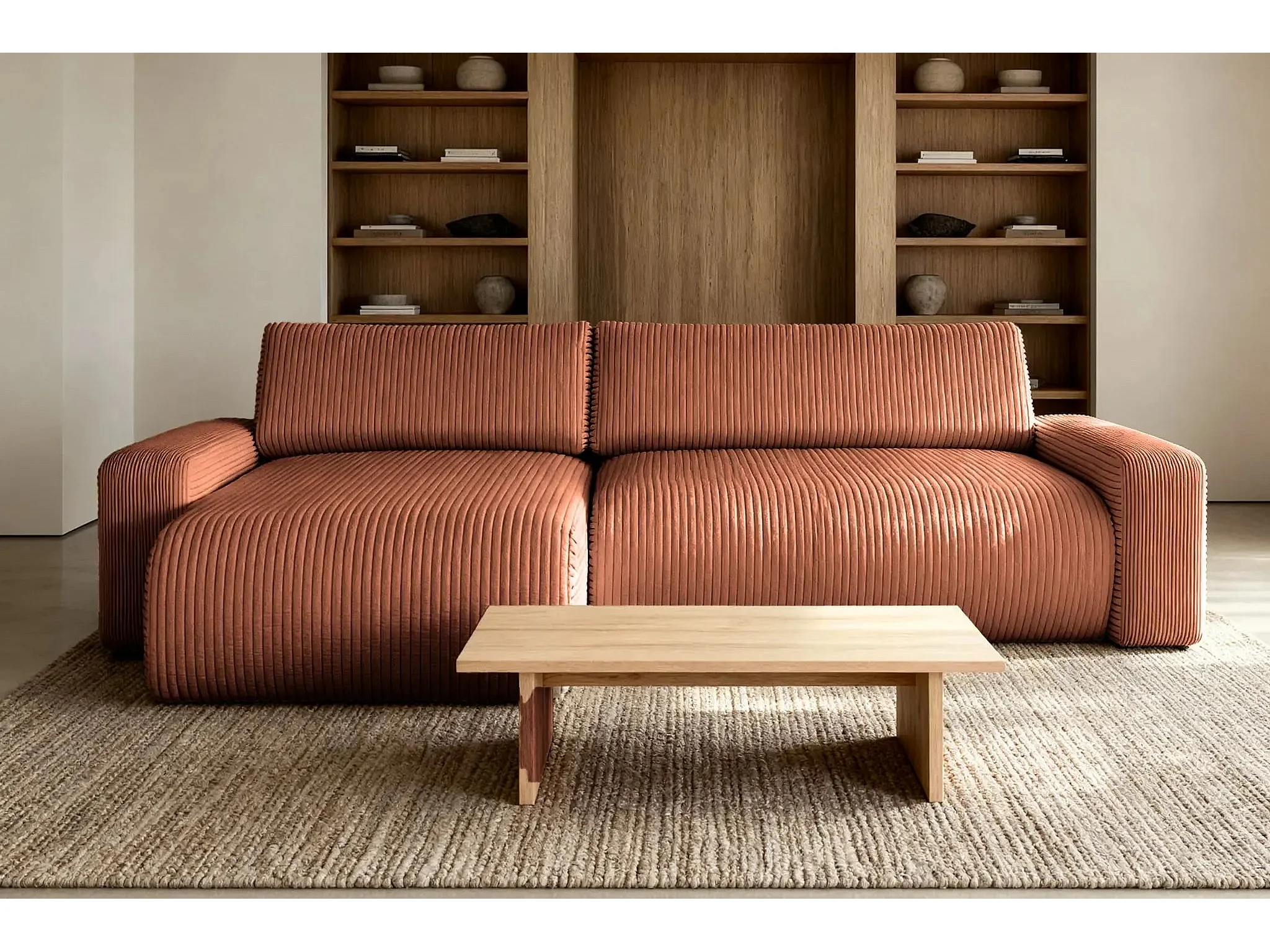 LUCIE - Canapé d'angle velours cotelé 4 places - Terracotta