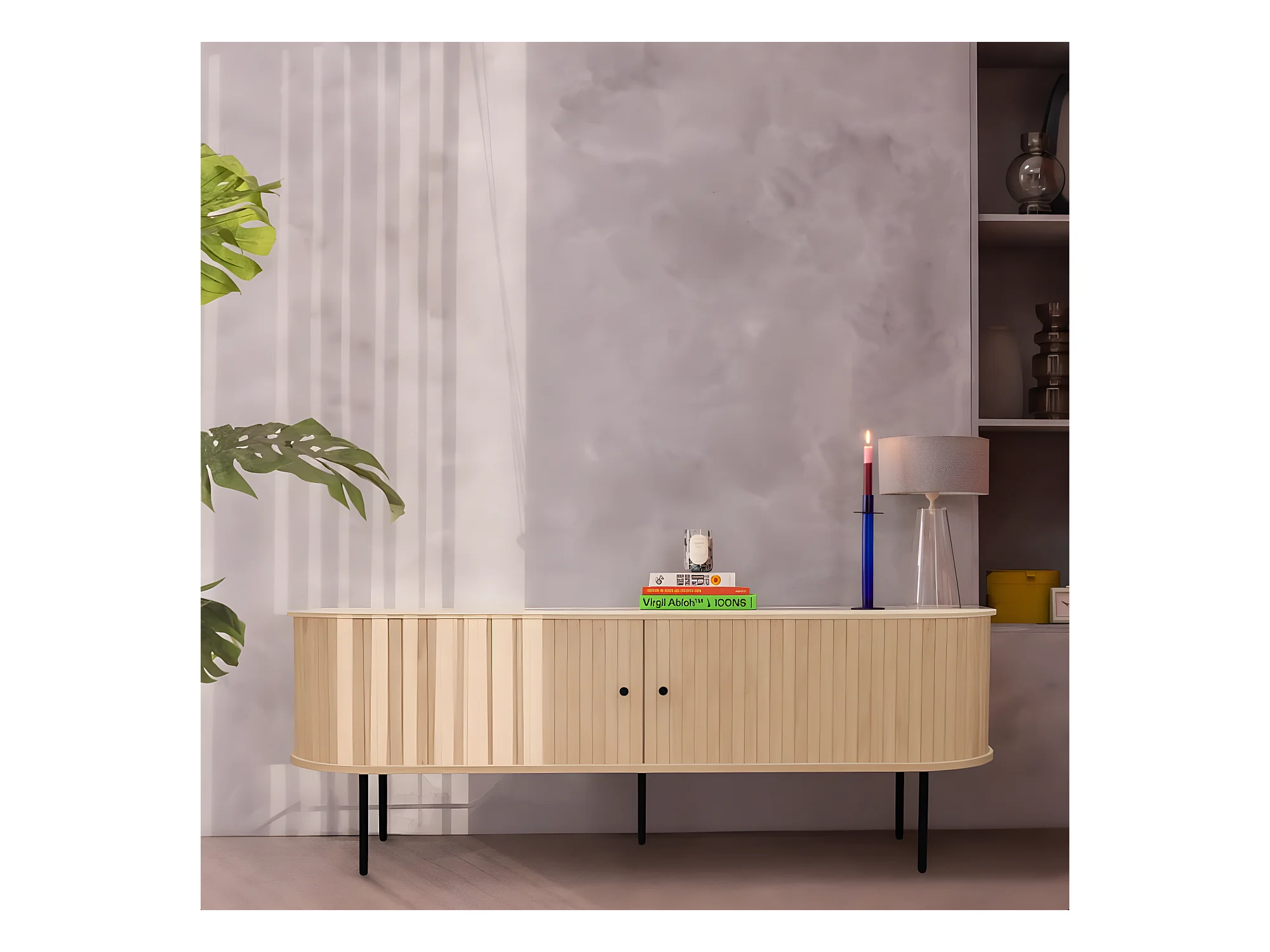 Lucie - Meuble tv aux portes coulissantes en bois et métal L150cm - Bois clair