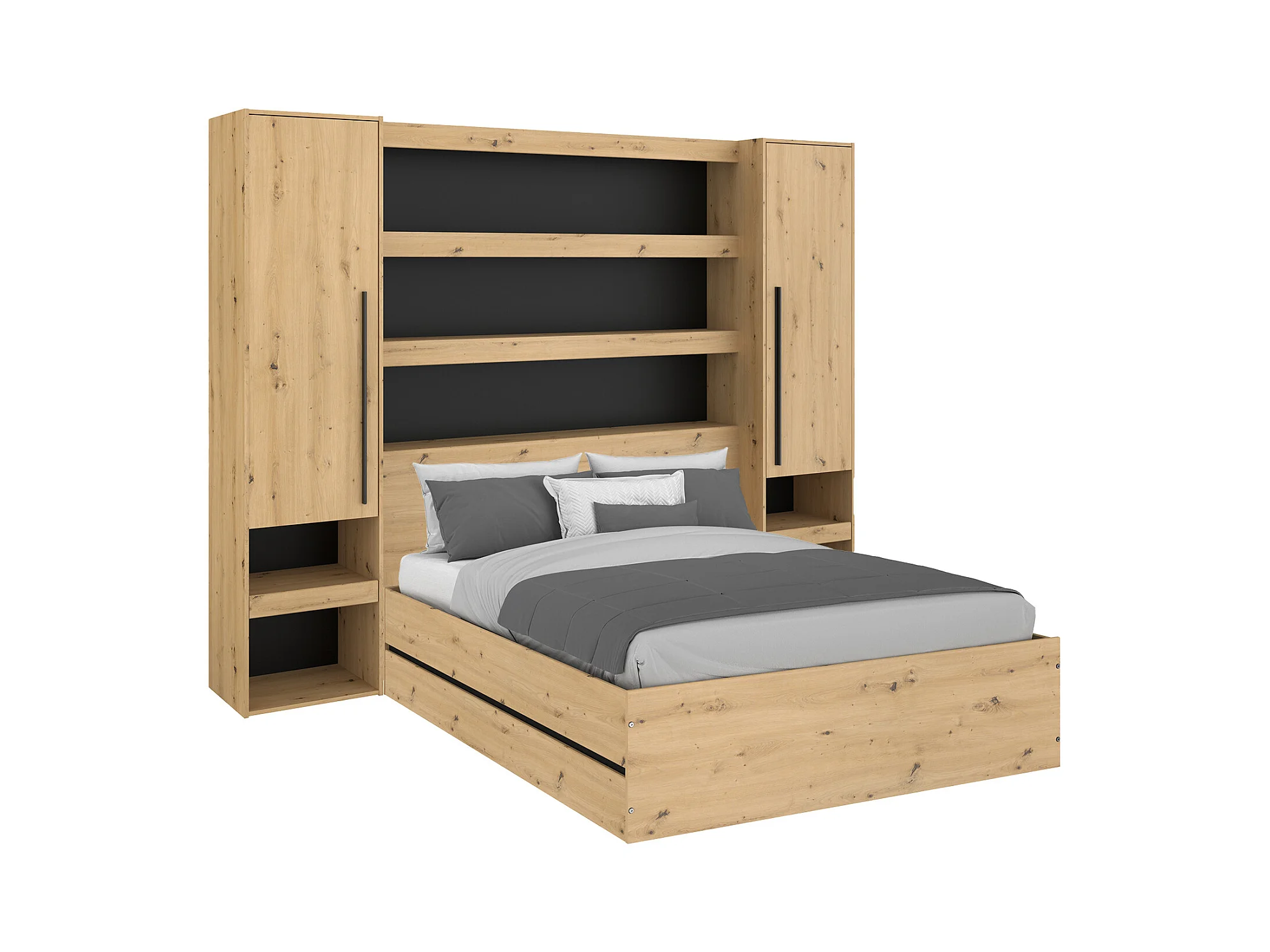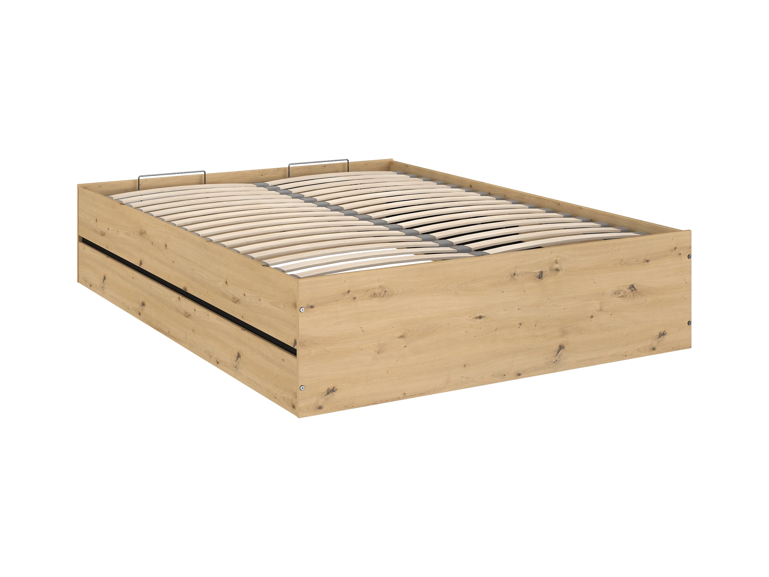 Lit coffre 140 x 190 cm LUDARO avec pont de lit VARLY - Coloris : Naturel et noir