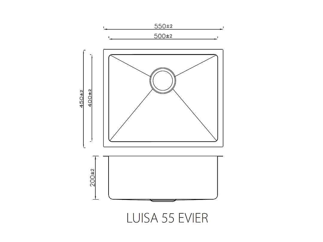Luisa évier 1 cuve seule 55x45 en inox - Essebagno