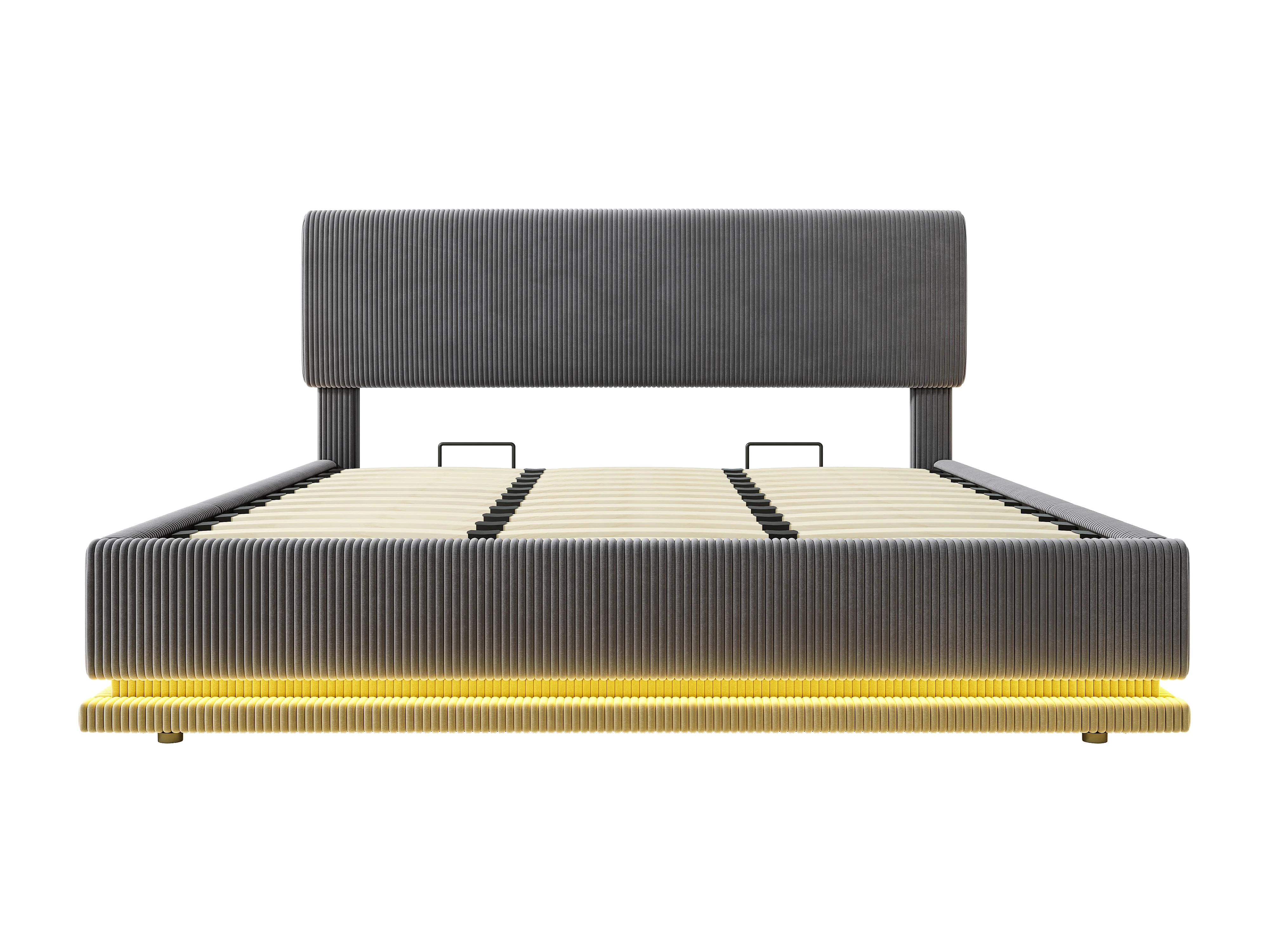 LUMA - Lit Coffre Rembourré 180x200 cm - Tête Réglable, LED, USB-C, Rangement - Velours Côtelé - Idéal Chambre à Coucher