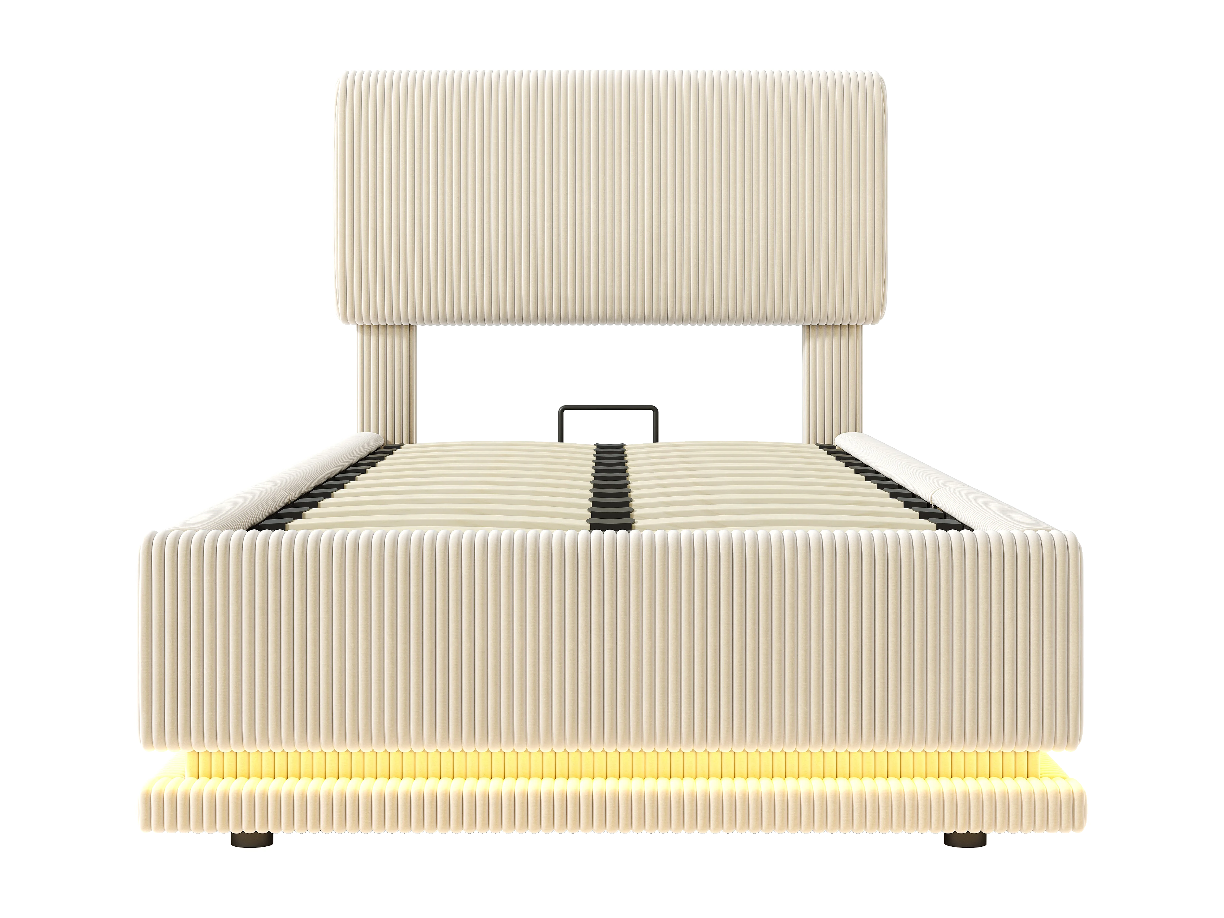 LUMA - Lit Coffre Rembourré 90x200 cm - Tête Réglable, LED, USB-C, Rangement - Velours Côtelé - Idéal Chambre à Coucher
