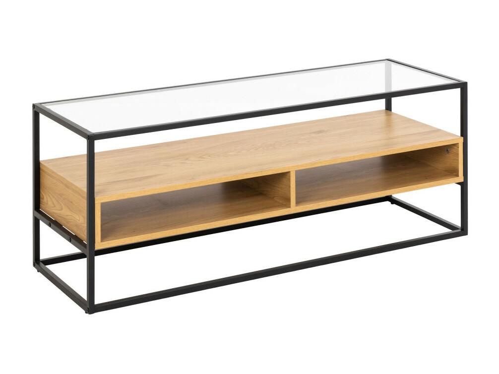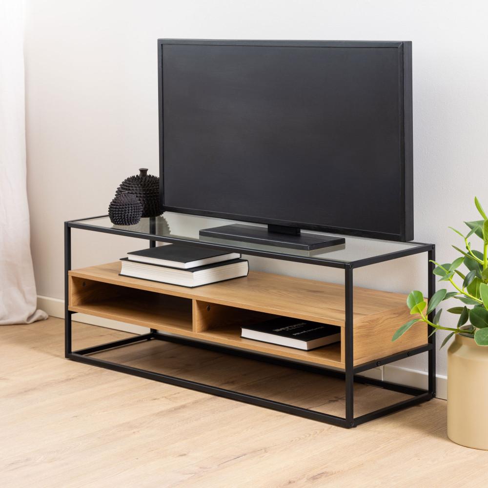 Luma - Meuble TV en verre, bois et métal L120cm - Bois clair