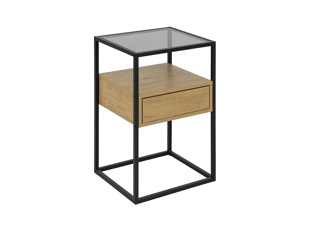 Luma - Table de chevet 1 tiroir en verre, bois et métal - Bois clair