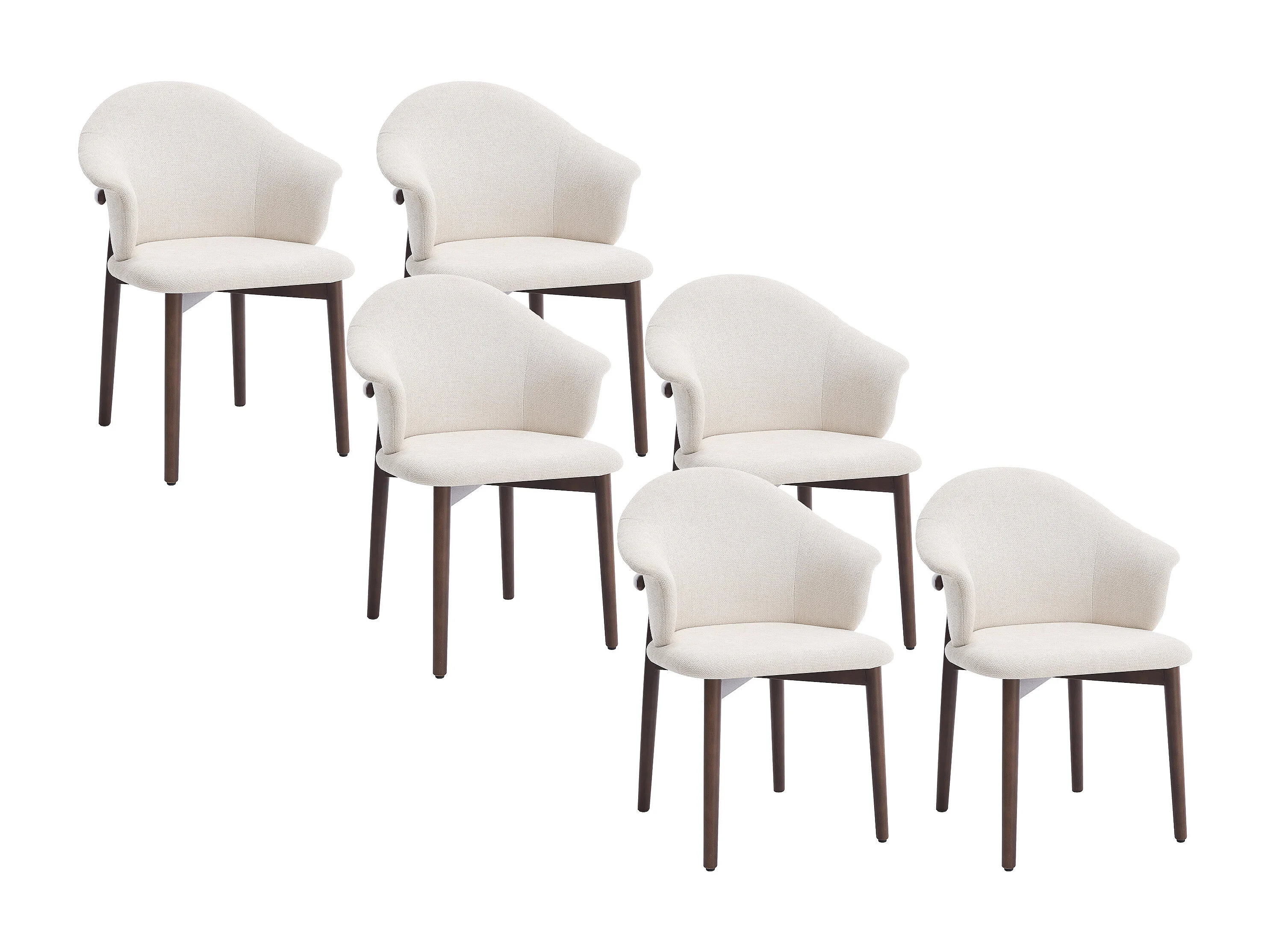 Lot de 6 chaises en tissu texturé et bois d'hévéa - Crème - LUMELY