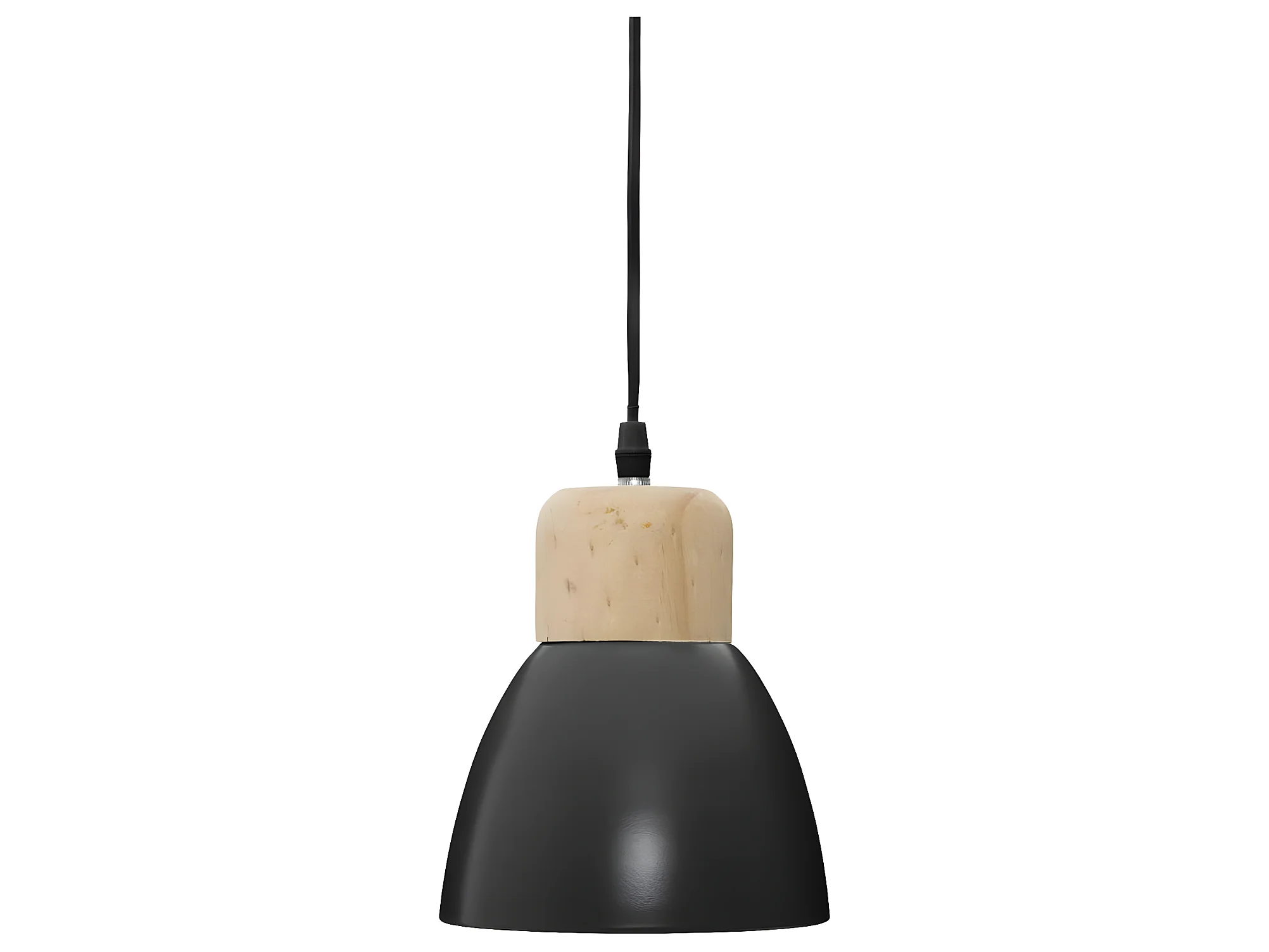 Luminaire Suspension en Bois et Métal Noir D 15 cm