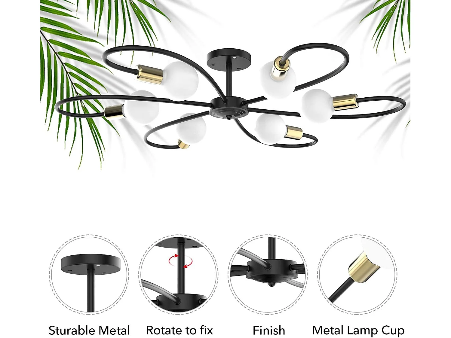 Luminaires de chambre à coucher 6 lumières moderne chandelier noir or lumière pendante luminaire de plafond du milieu du siècle luminaires
