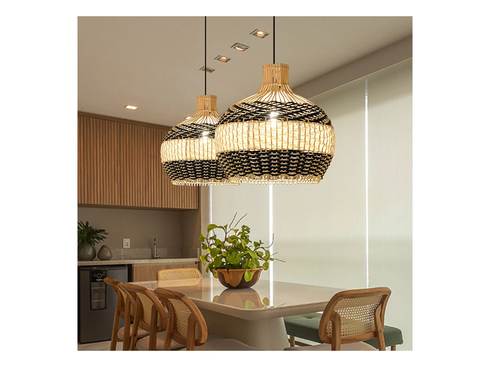 Luminaires suspendus rotin géométrique - noir - d50 cm x h50 cm
