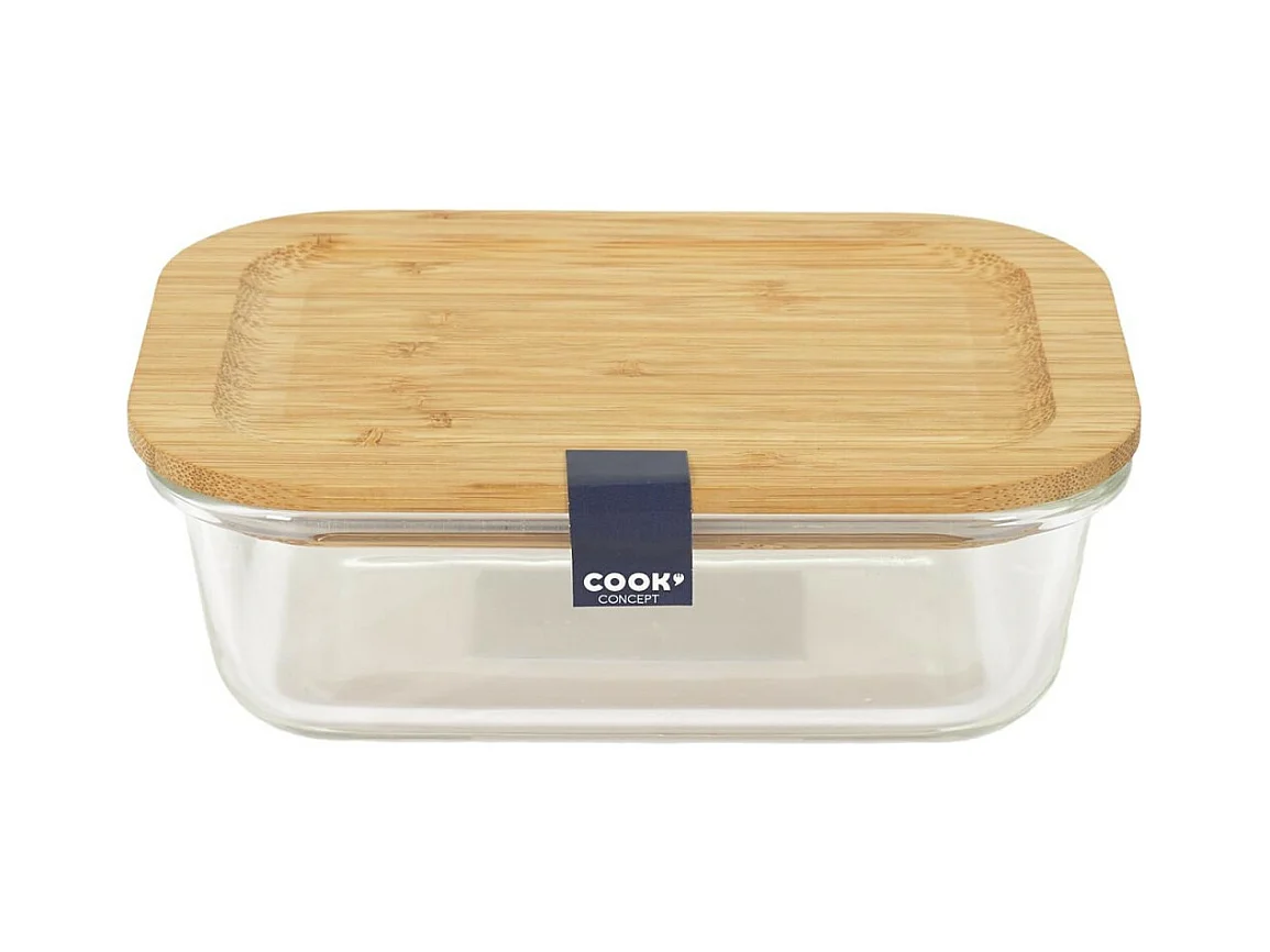 Lunch Box Verre & Bambou "Repas" 52cl Transparent