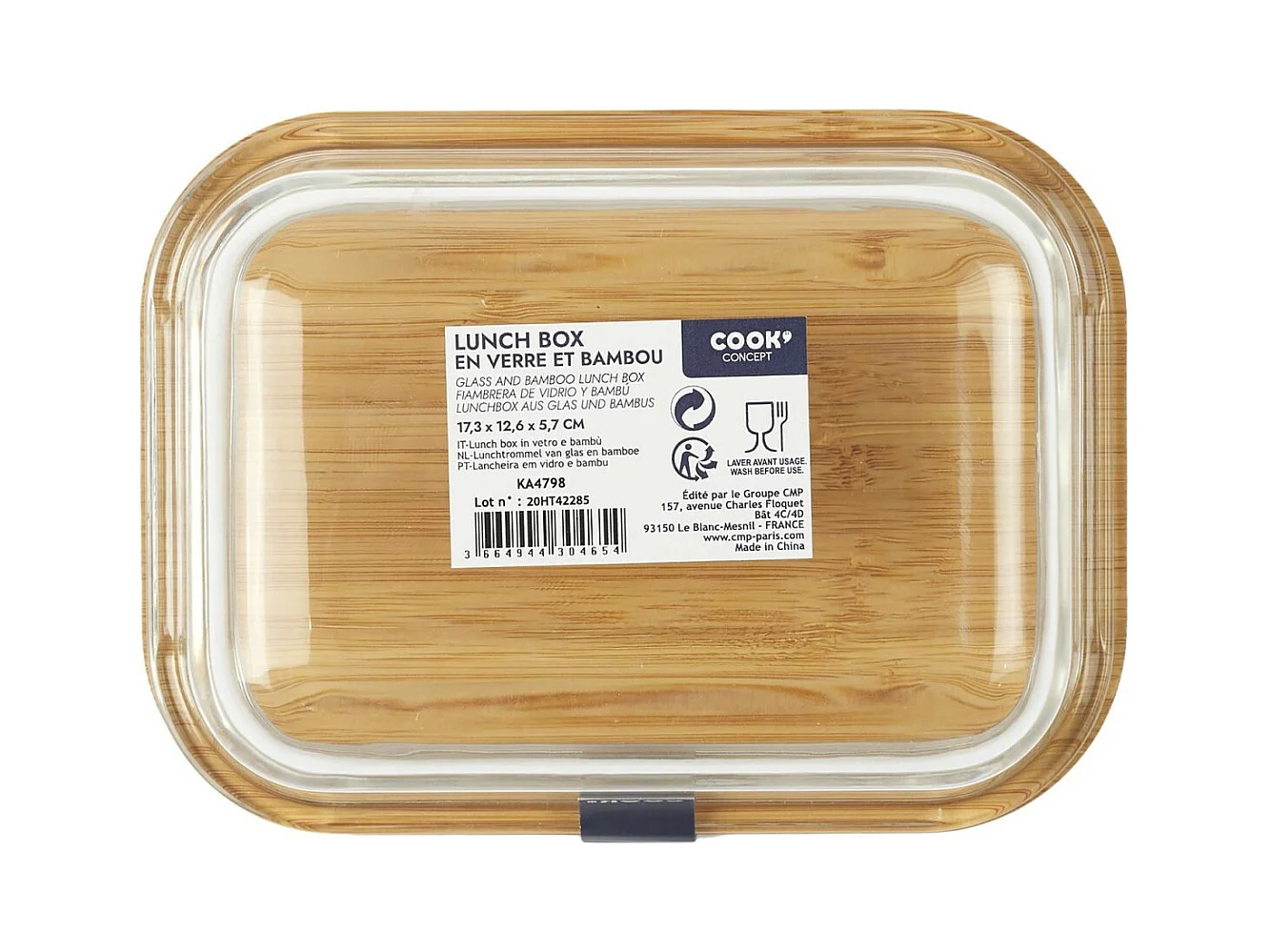 Lunch Box Verre & Bambou "Repas" 32cl Transparent