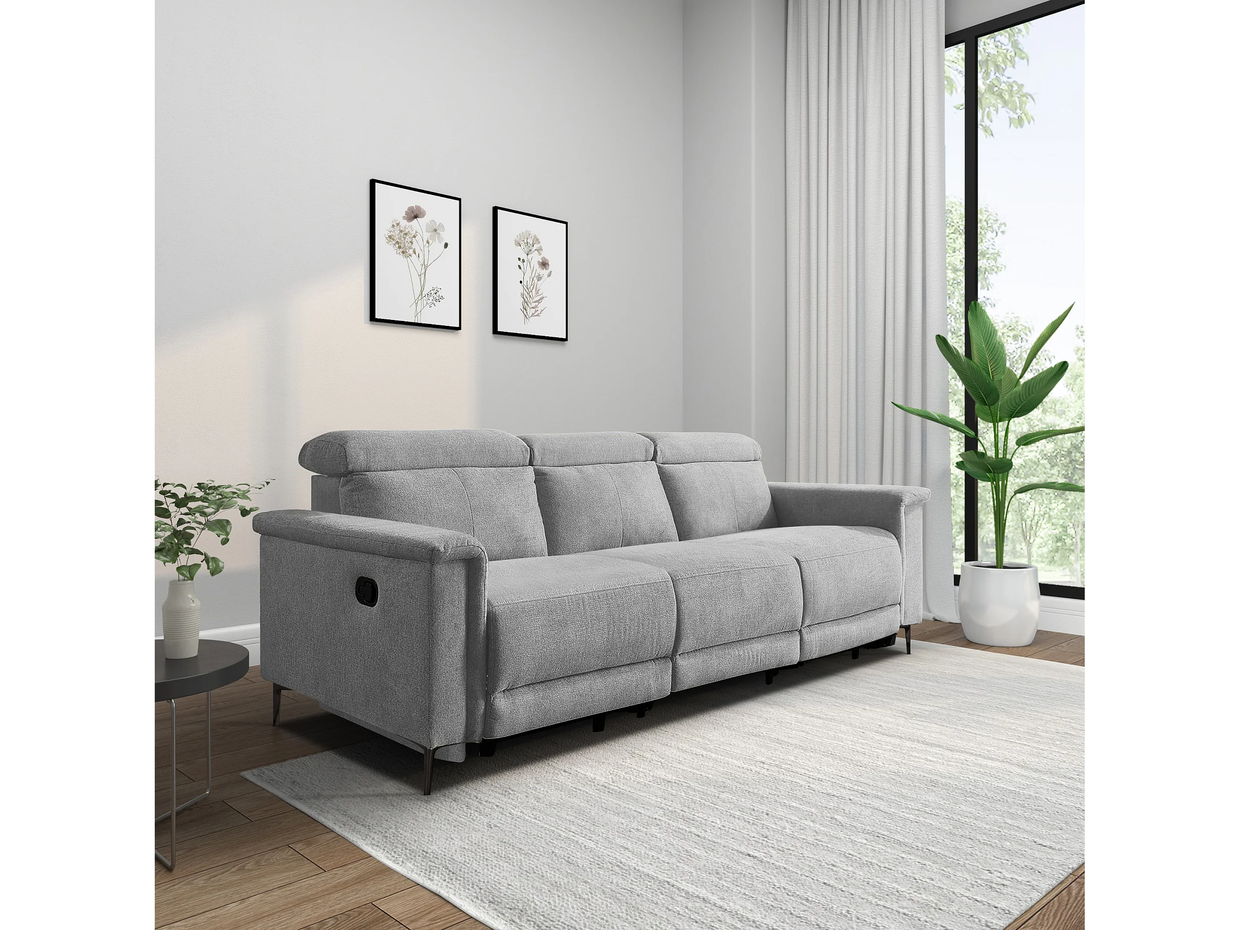 Lund | Canapé 3 places avec 2 fauteuils inclinables manuelleuels en tissu gris clair