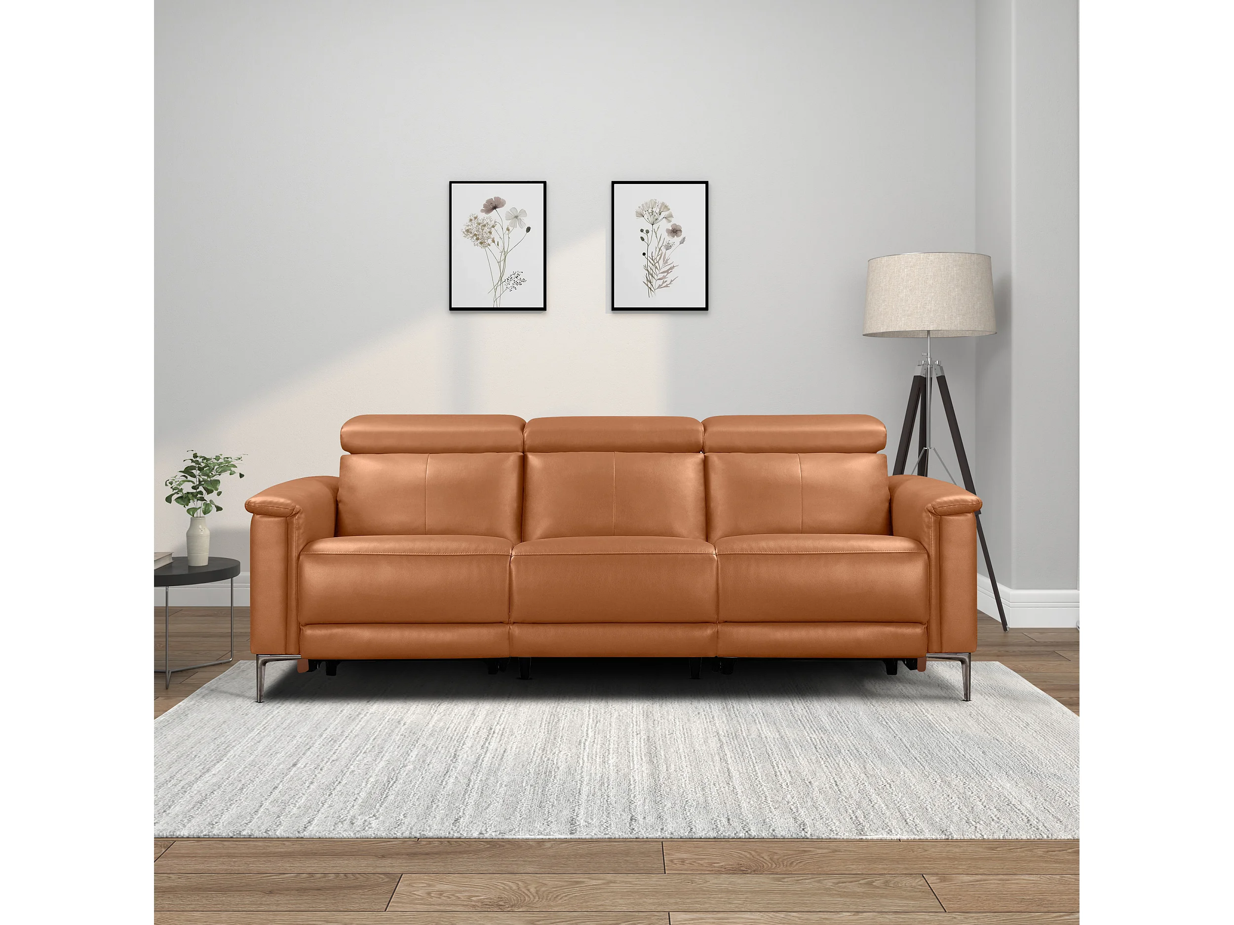 Lund | Canapé 3 places avec fauteuil inclinable 2 à manuelleuels en cuir artificiel Cognac