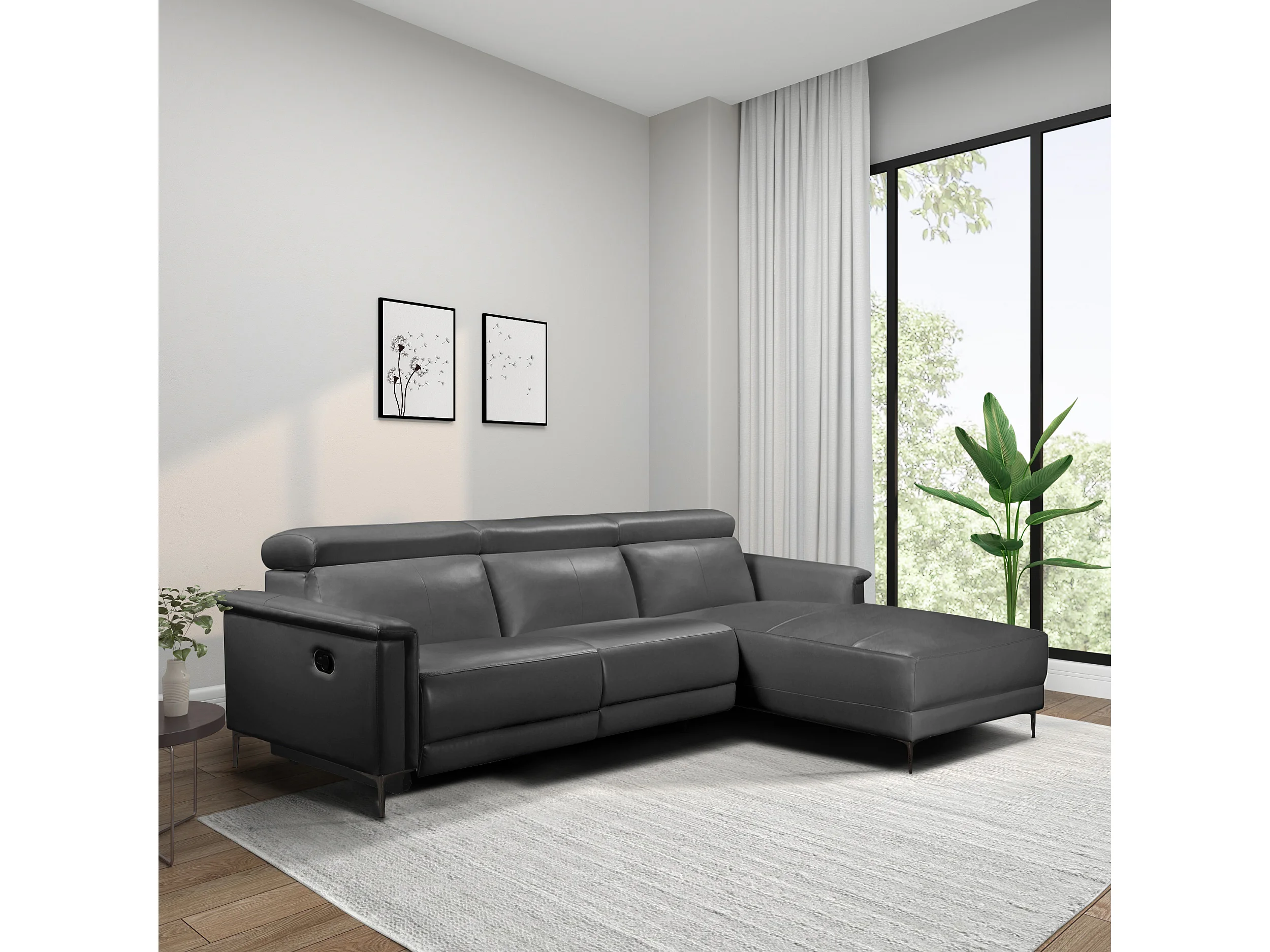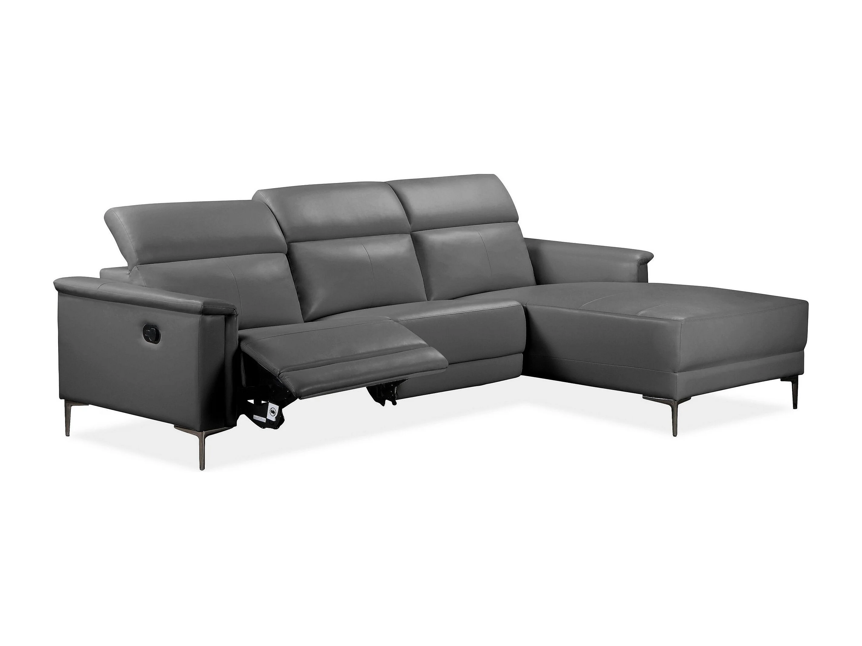 Lund | Canapé chaise lounge avec un fauteuil inclinable manuelleuel en cuir artificiel gris