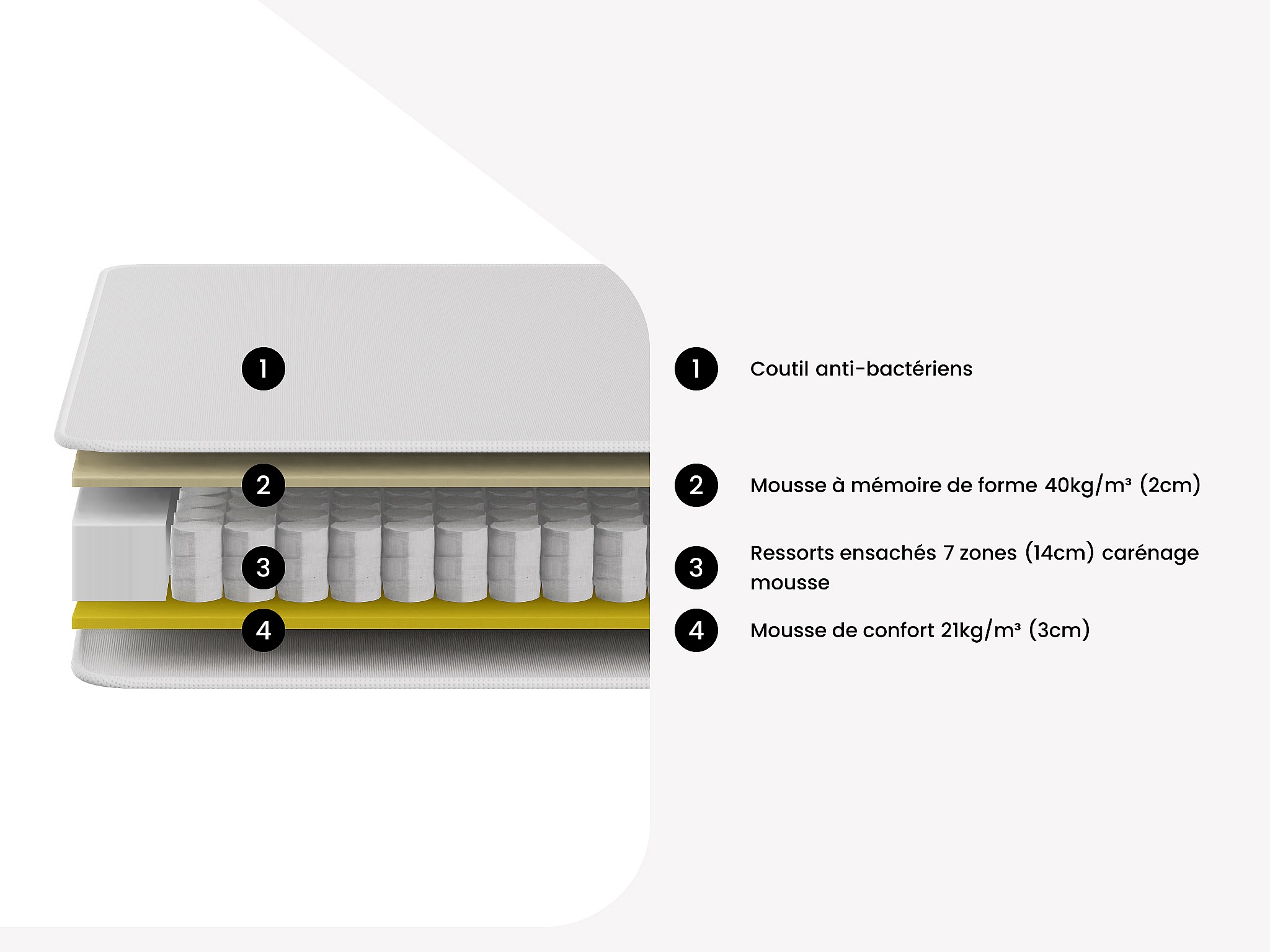 Ensemble 160 x 200 cm sommier tapissier + matelas ressorts ensachés 7 zones et mémoire de forme ép.22cm - LUREAN de YSMÉE
